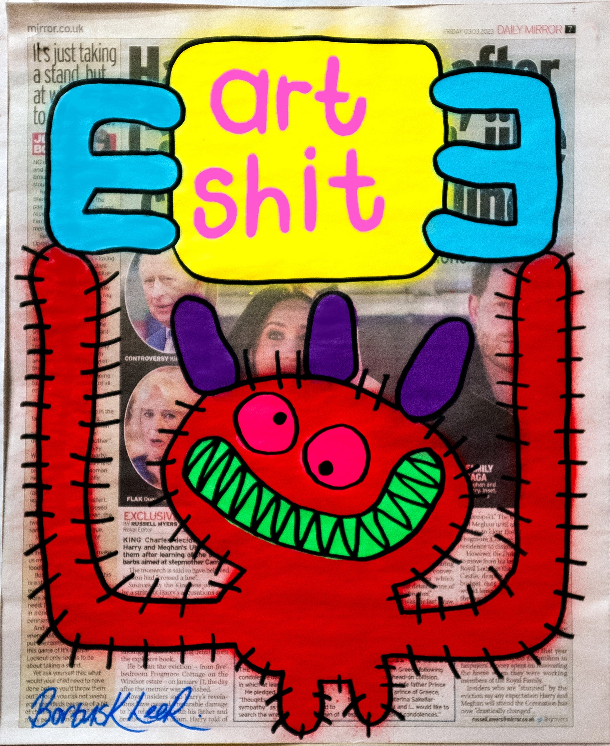 spraypaint, acrylic marker on newspaper, 14” x 11”, 2023