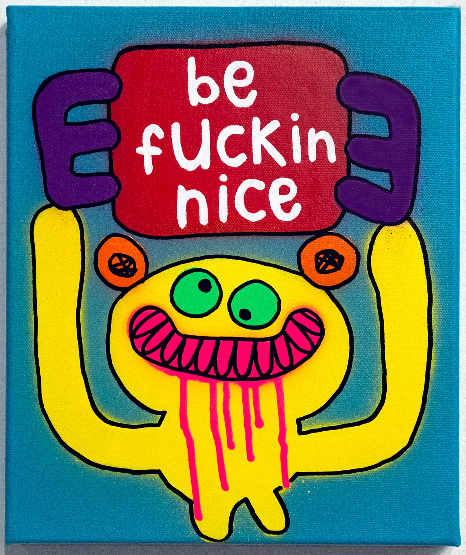 spraypaint, acrylic marker on canvas 12” x 10”, 2023