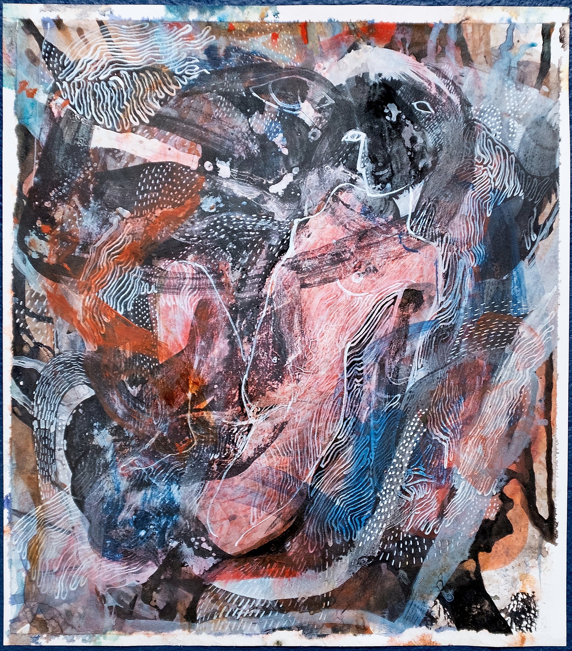 Pigment, acrylic, watercolor on canvas paper, 11.2" x 9.8”