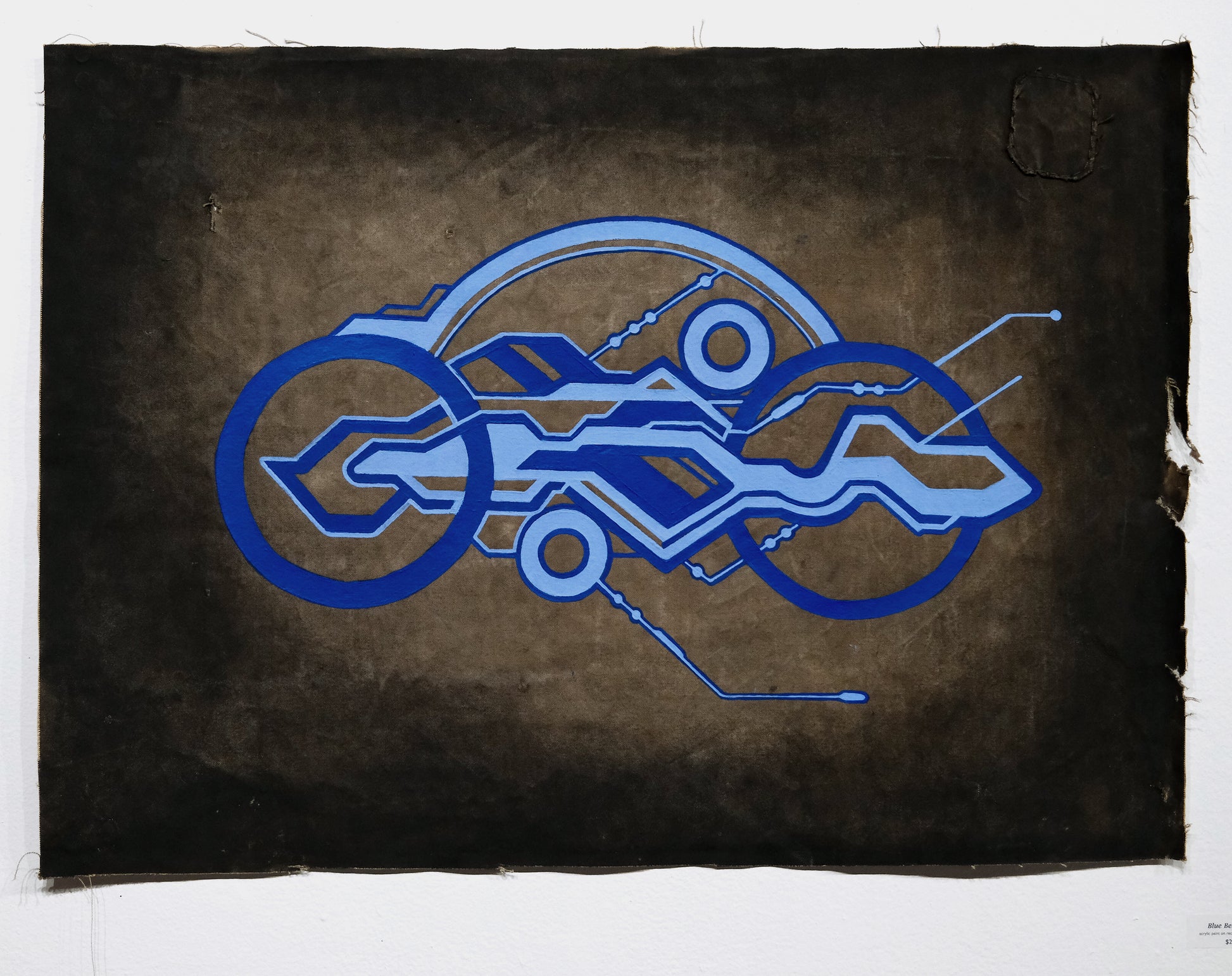 acrylic paint on reclaimed canvas tarpaulin, 23.5” x 33”