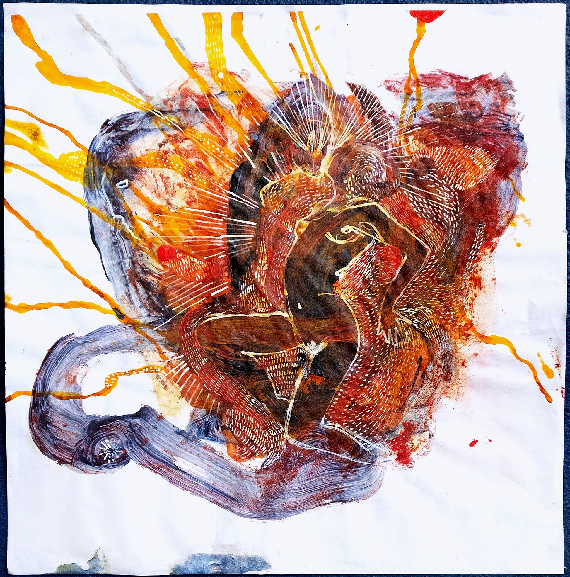 Pigment, acrylic, watercolor on paper, 13.7" x 13.7"