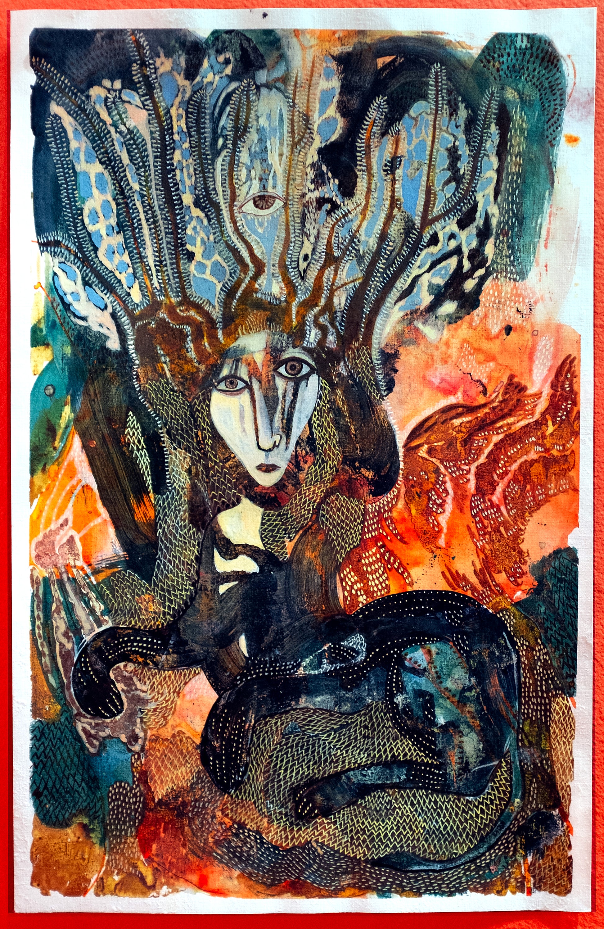 pigments, casein binder, watercolors, inks on art paper, 17.5" x 12.5"