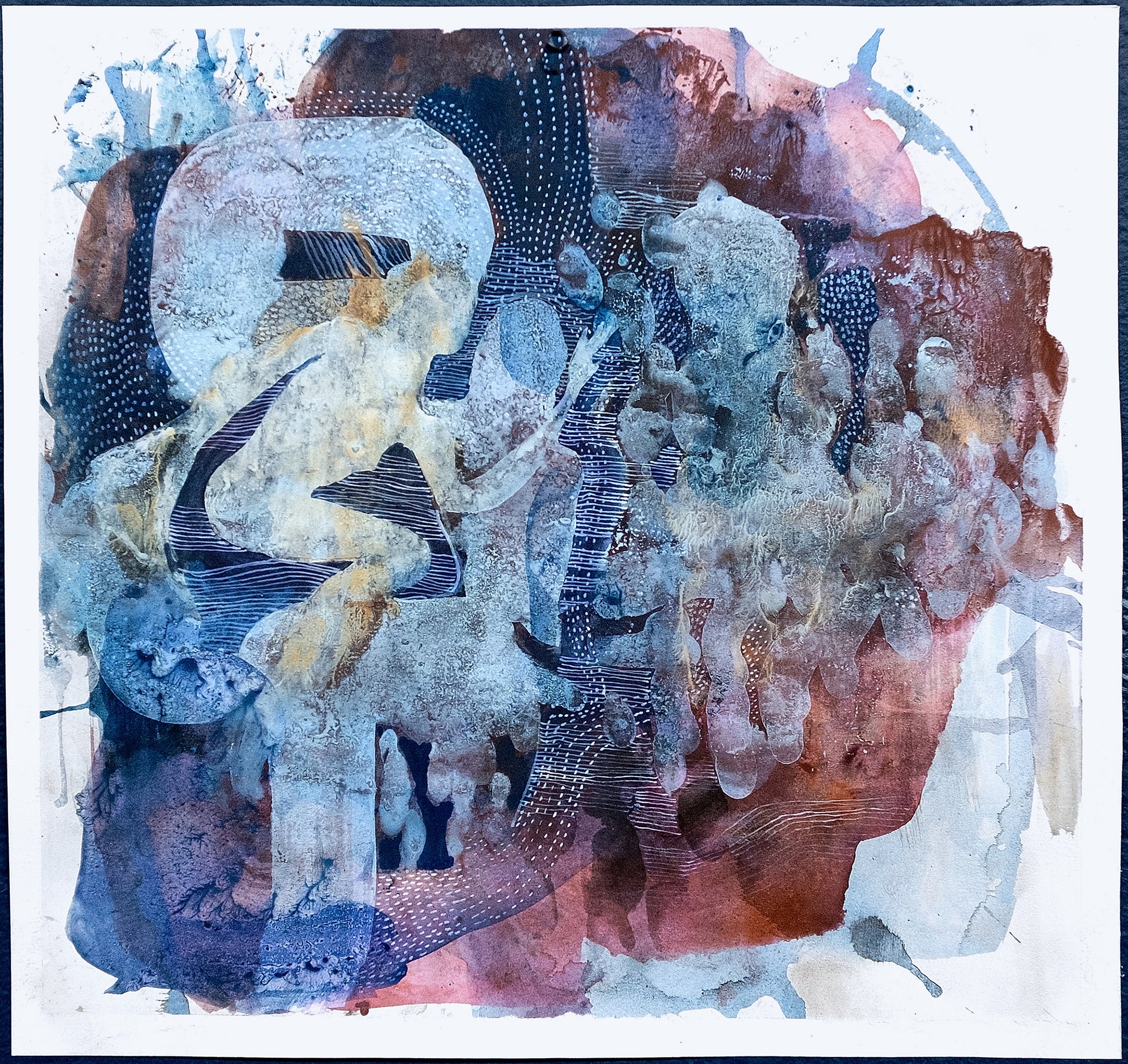 Pigment, acrylic, watercolor on 250g paper, 12.8" x 13.9”