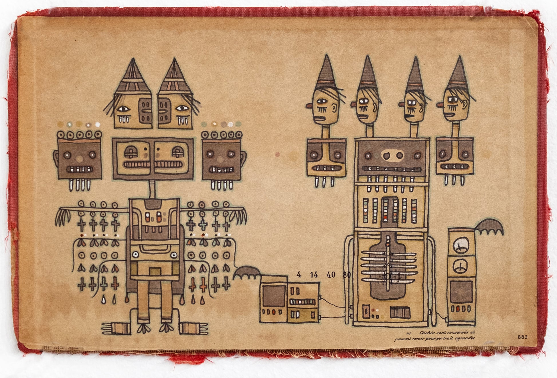 inks the artist mixes from dead pens and markers on vintage bookcover, 5.25 × 8.25 in