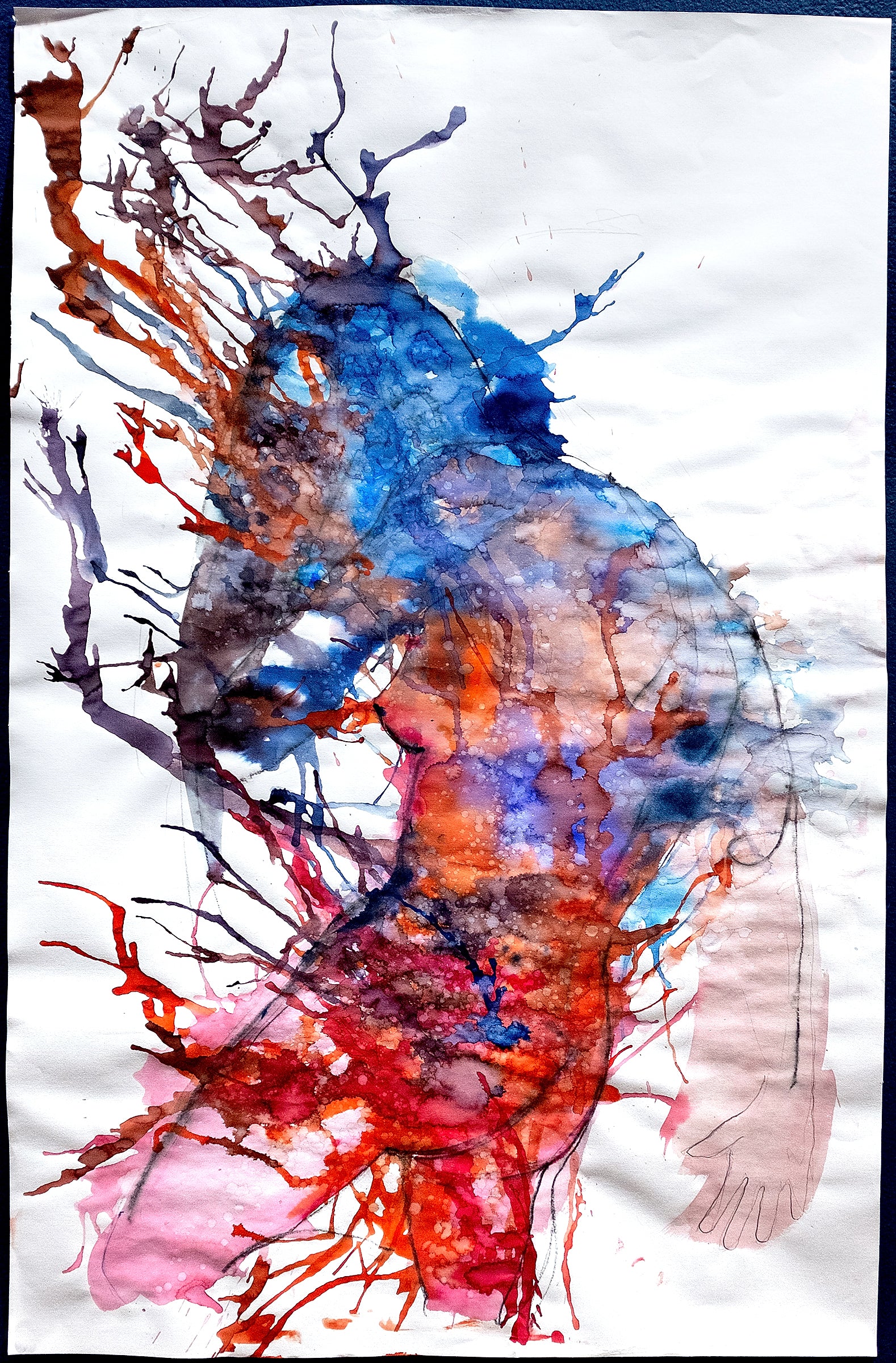 Pigment, acrylic, watercolor on paper, 39" x 25.5"
