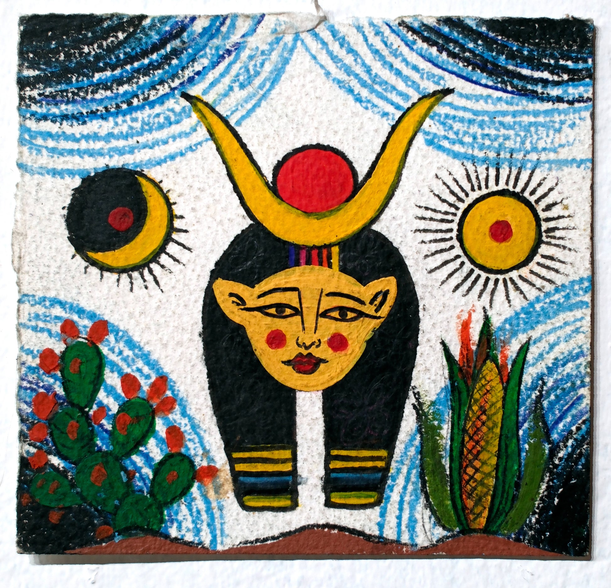 clay based acrylics, pigment pencils on paper, 4.5" x 4.75", 2024