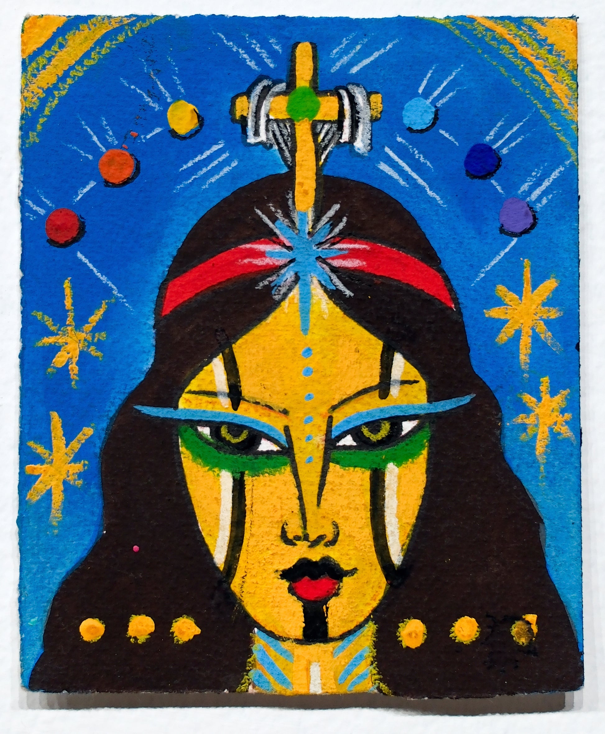 clay based acrylics, pigment pencils on paper, 4.5" x 3.5", 2021