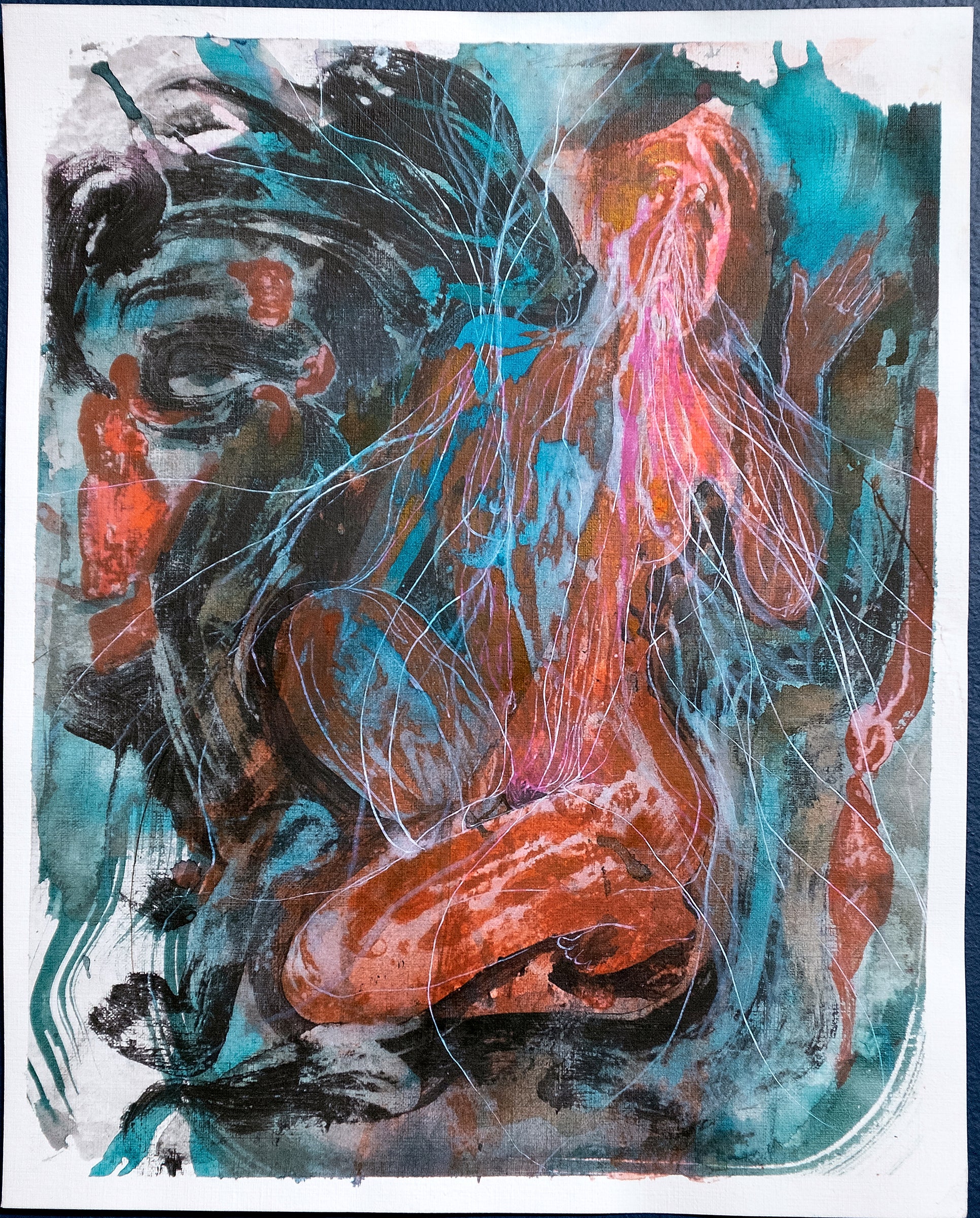 Pigment, acrylic, watercolor on paper, 15.7” x 12.6"