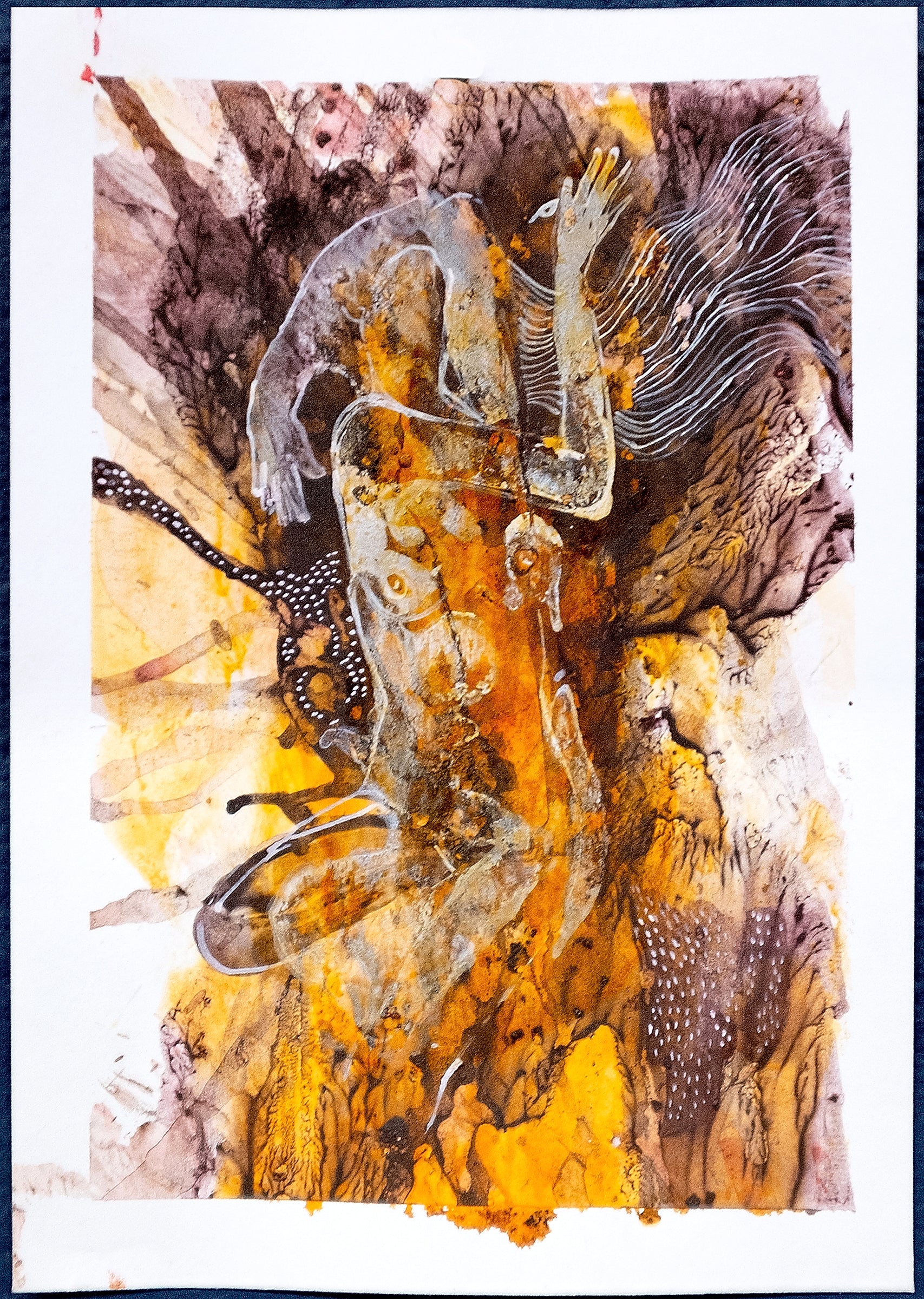 Pigment, acrylic, watercolor on 180g paper, 8.2" x 5.8"