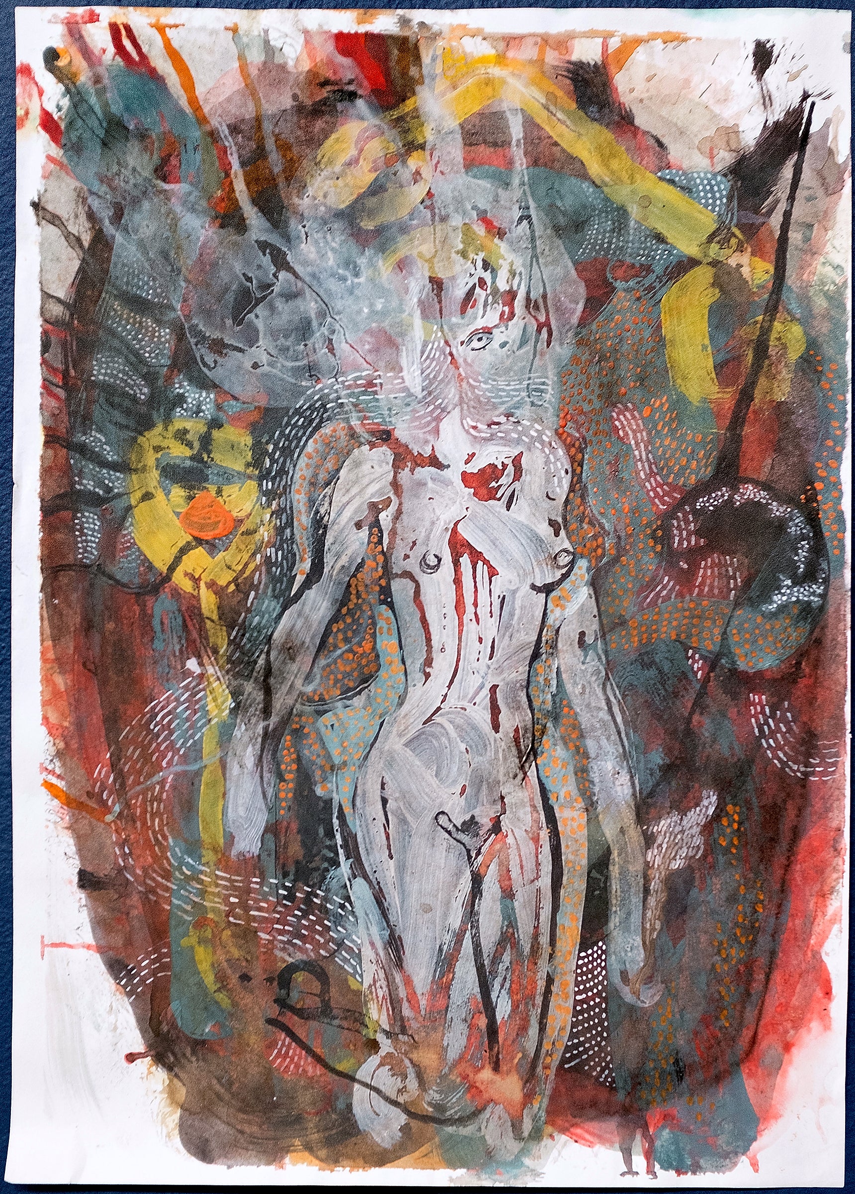 Pigment, acrylic, watercolor on paper, 19.7" x 14.5"