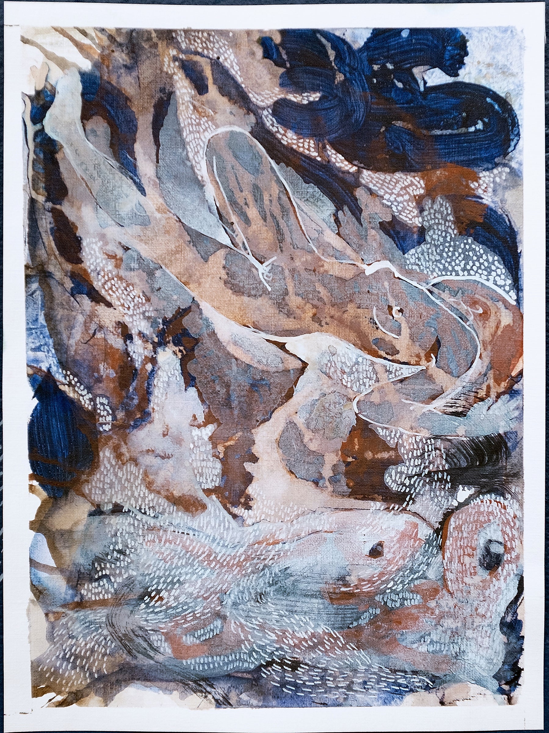 Pigment, acrylic, watercolor on canvas paper, 12.9" x 9.6"