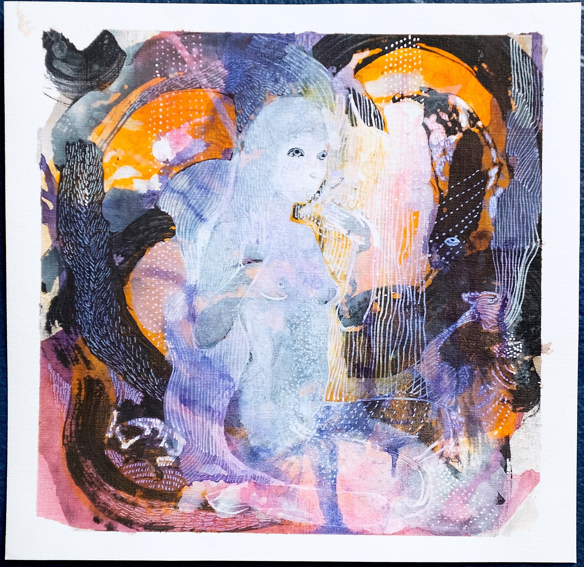 Pigment, acrylic, watercolor on canvas paper, 9.8" x 9.4"