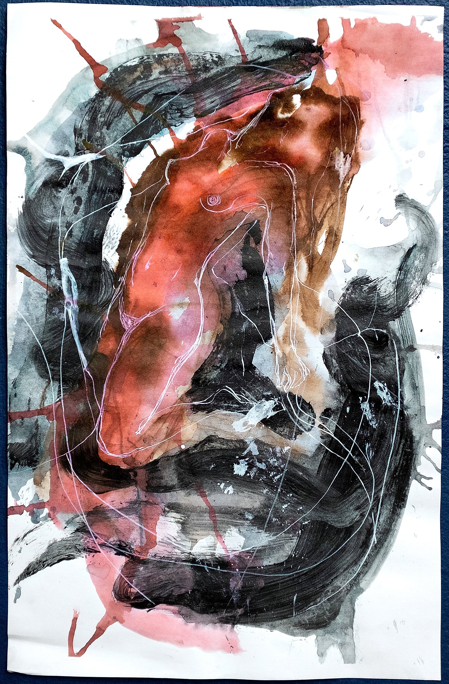 Pigment, acrylic, watercolor on paper, 19.6" x 12.2