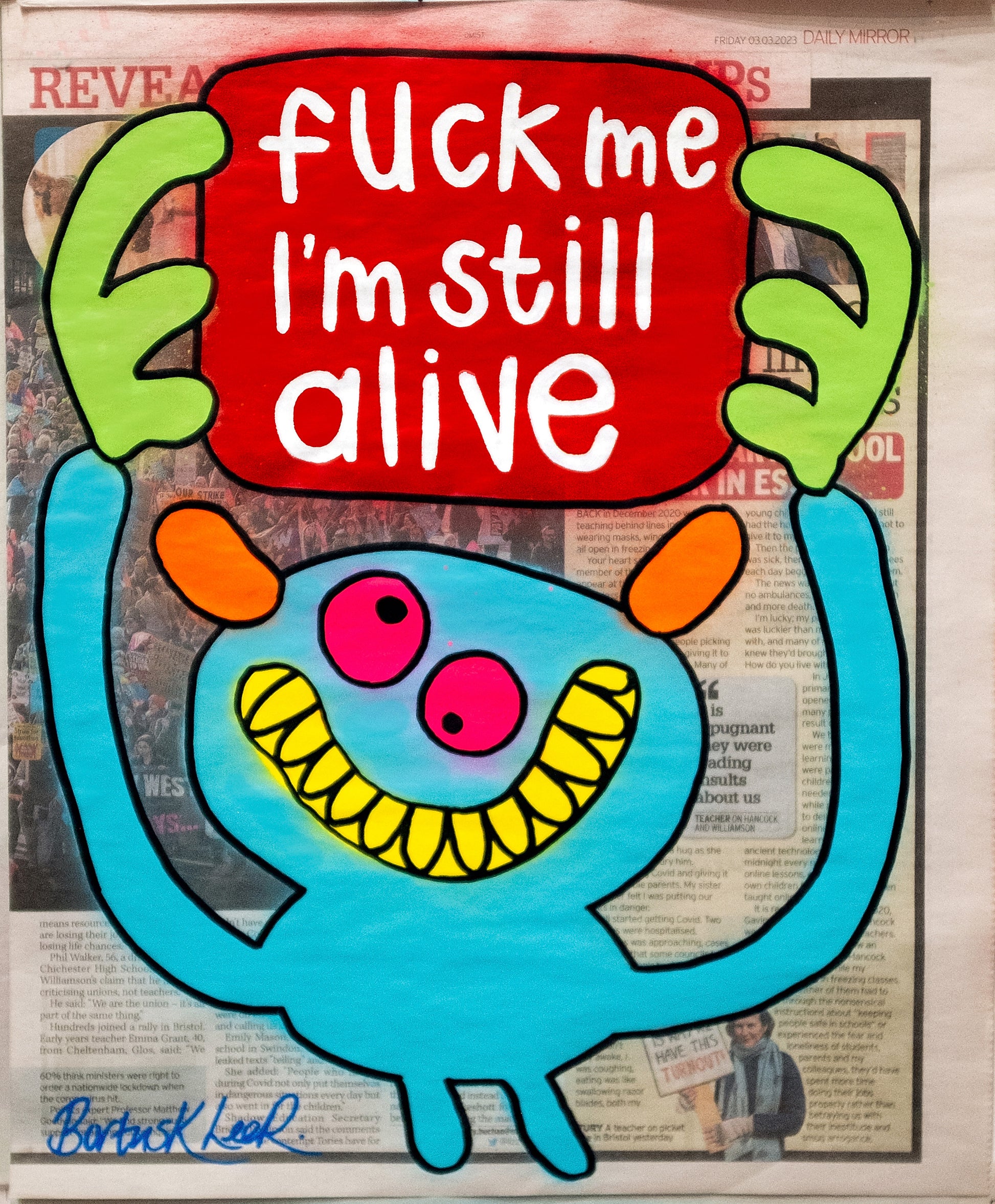 spraypaint, acrylic marker on newspaper, 14” x 11”, 2023