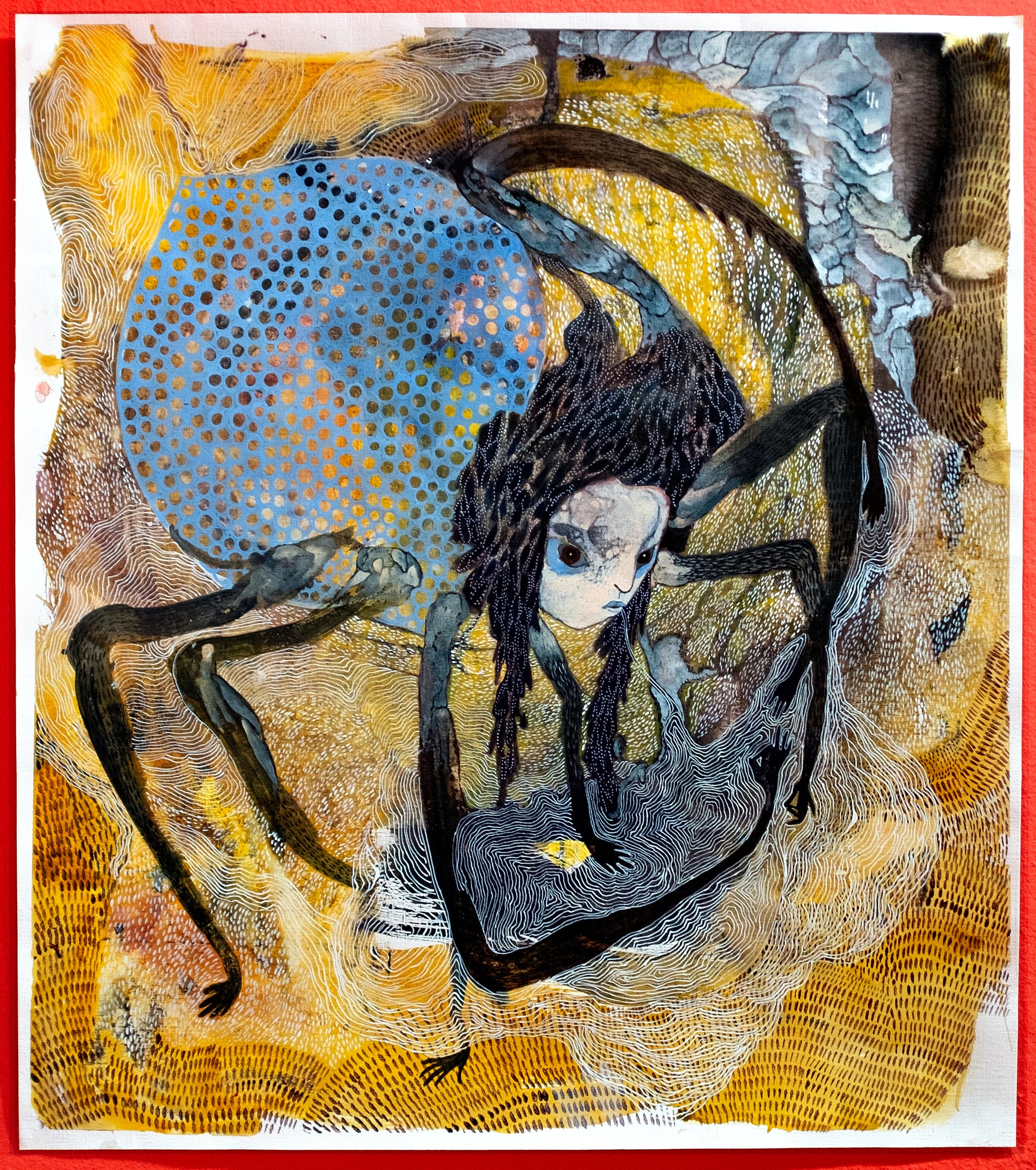 pigments, casein binder, watercolors, inks on art paper, 27.5" x 25"