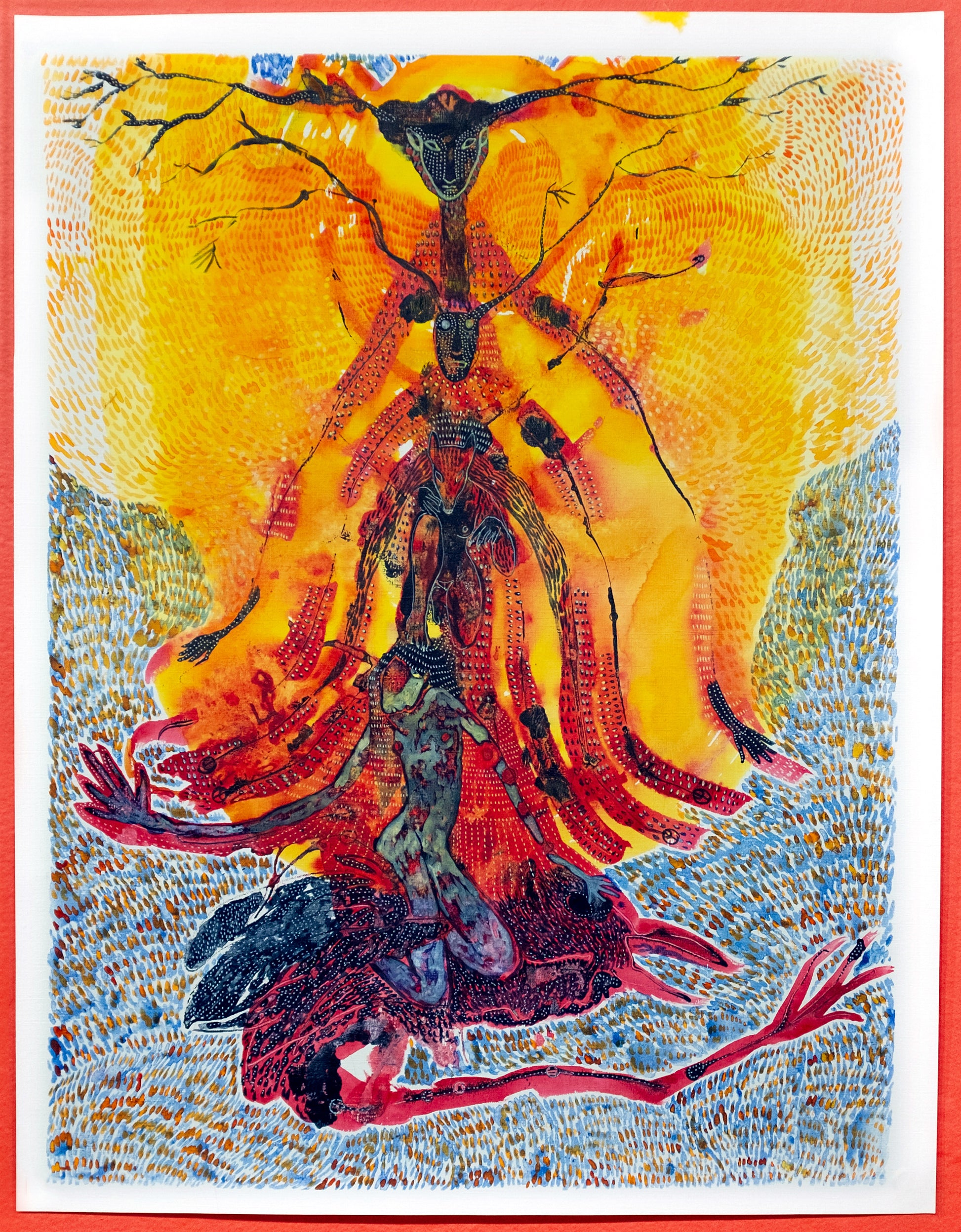 pigments, casein binder, watercolors, inks on art paper, 25.5" x 19.5"