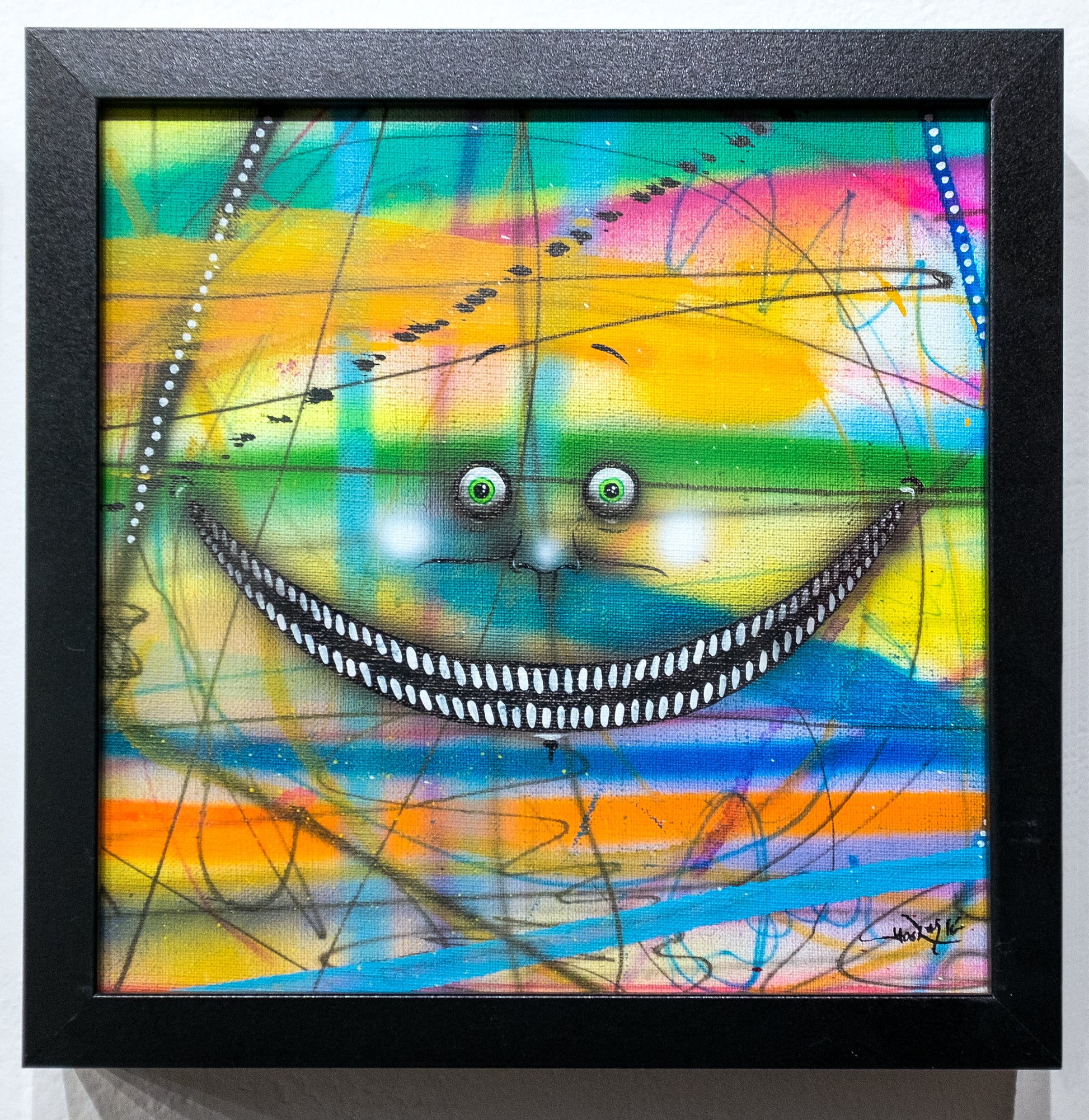 Acrylics and spray paint on canvas, 10" x 10", framed, 2016
