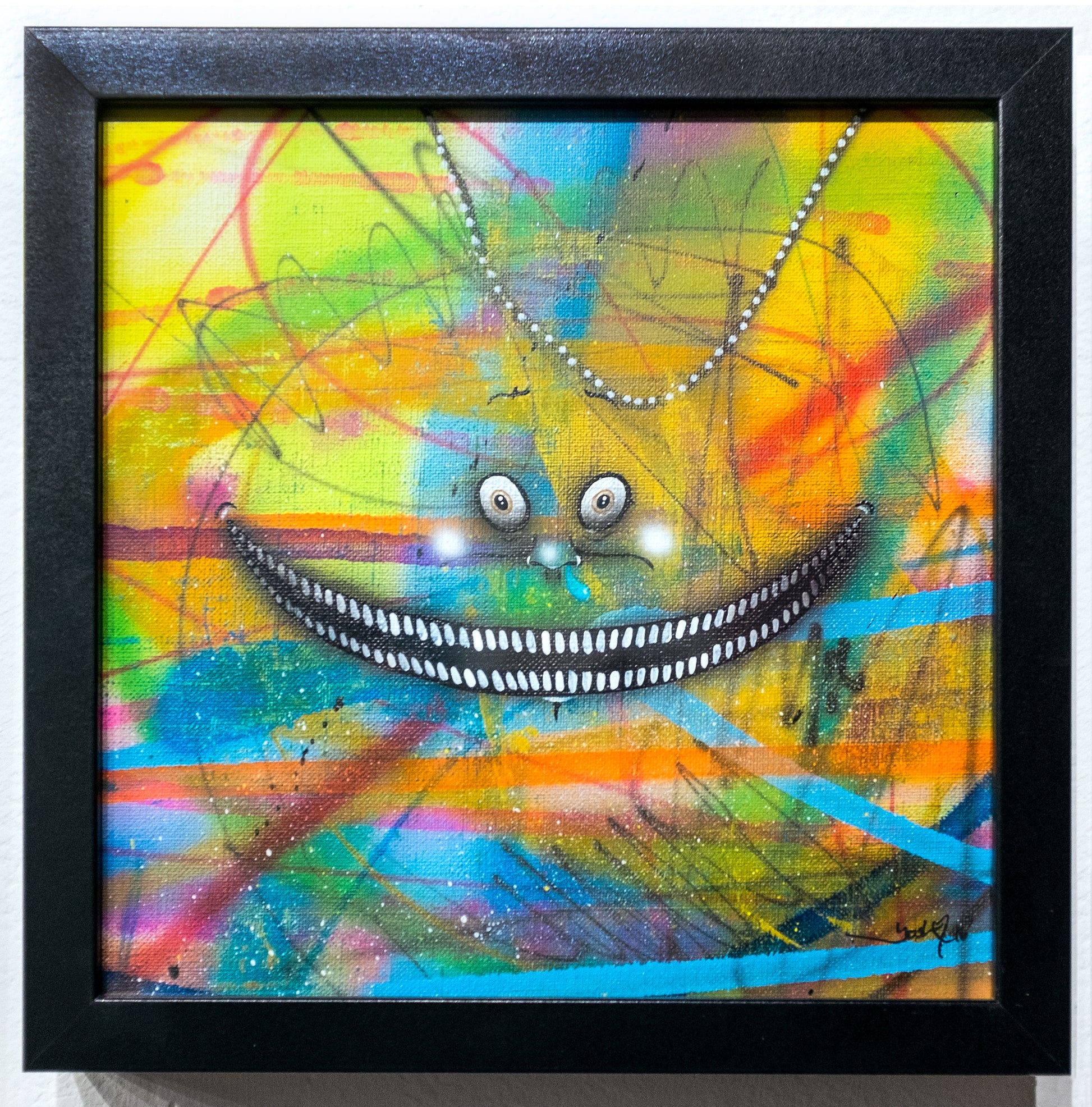 Acrylics and spray paint on canvas, 10" x 10", framed, 2016