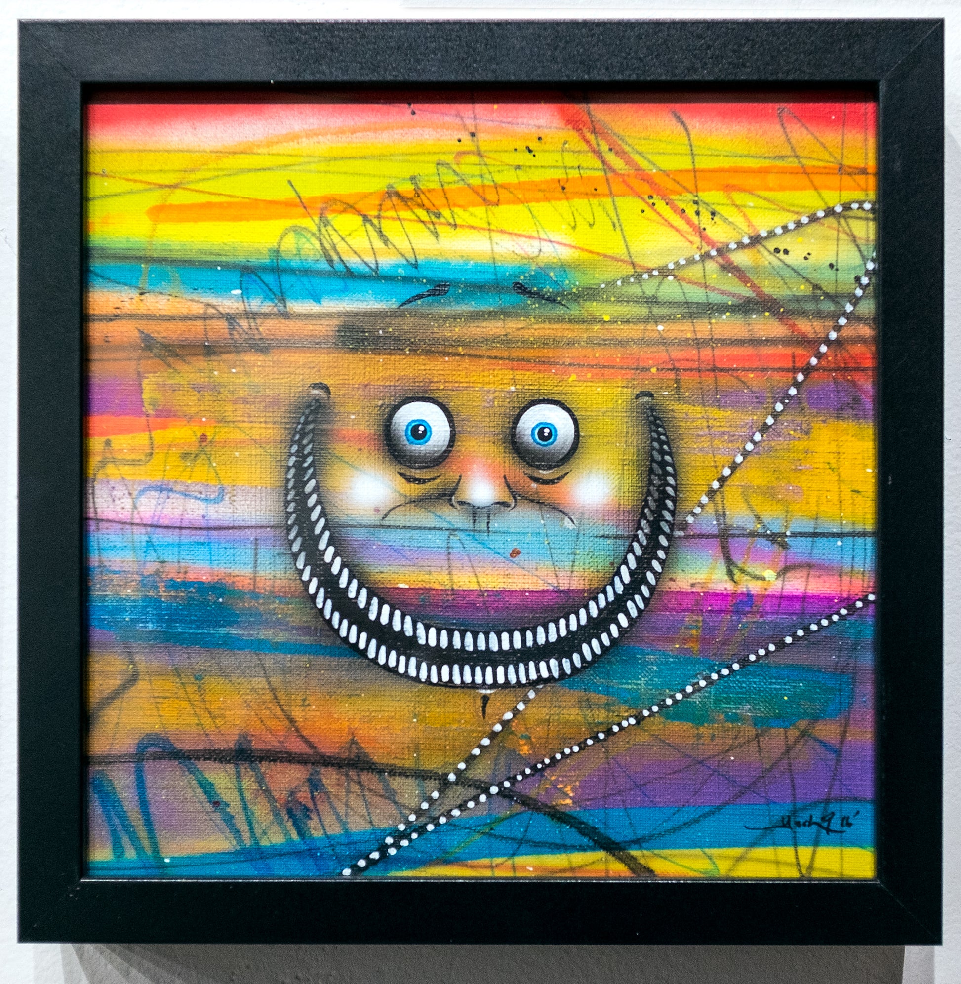 Acrylics and spray paint on canvas, 10" x 10", framed, 2016