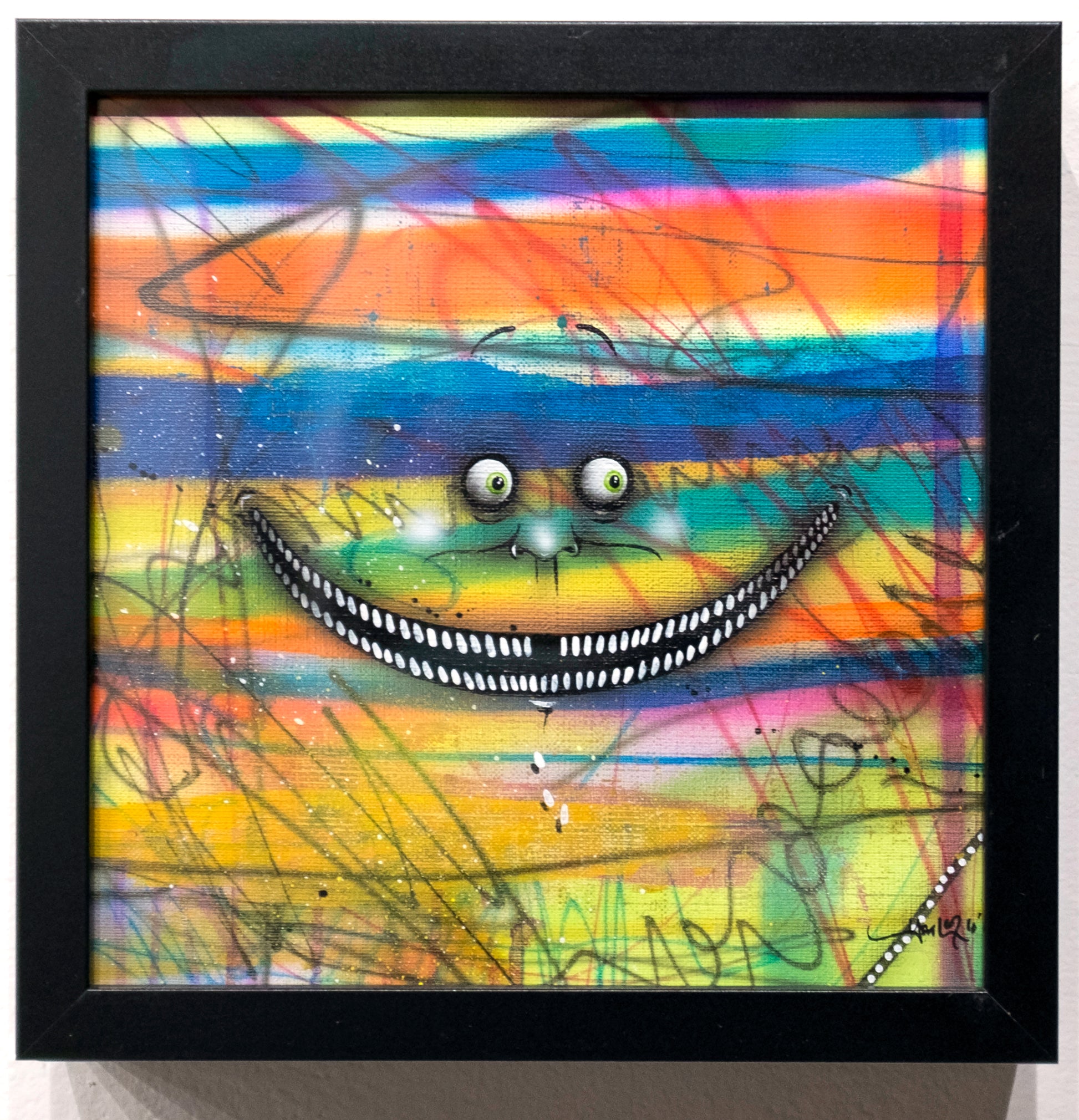 Acrylics and spray paint on canvas, 10" x 10", framed, 2016