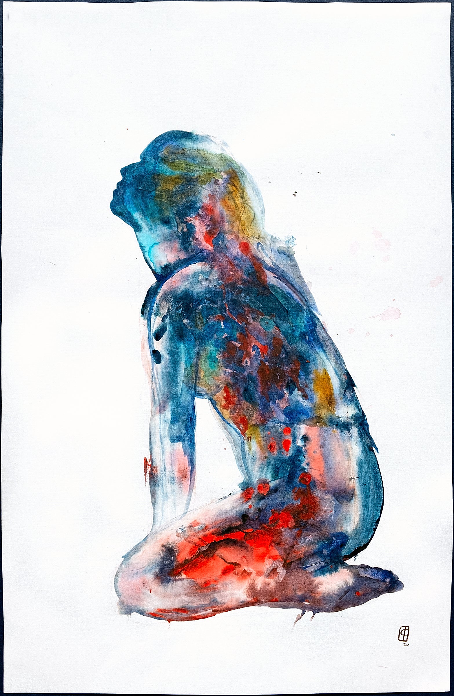Pigment, acrylic, watercolor on paper, 39.3" x 25.6"