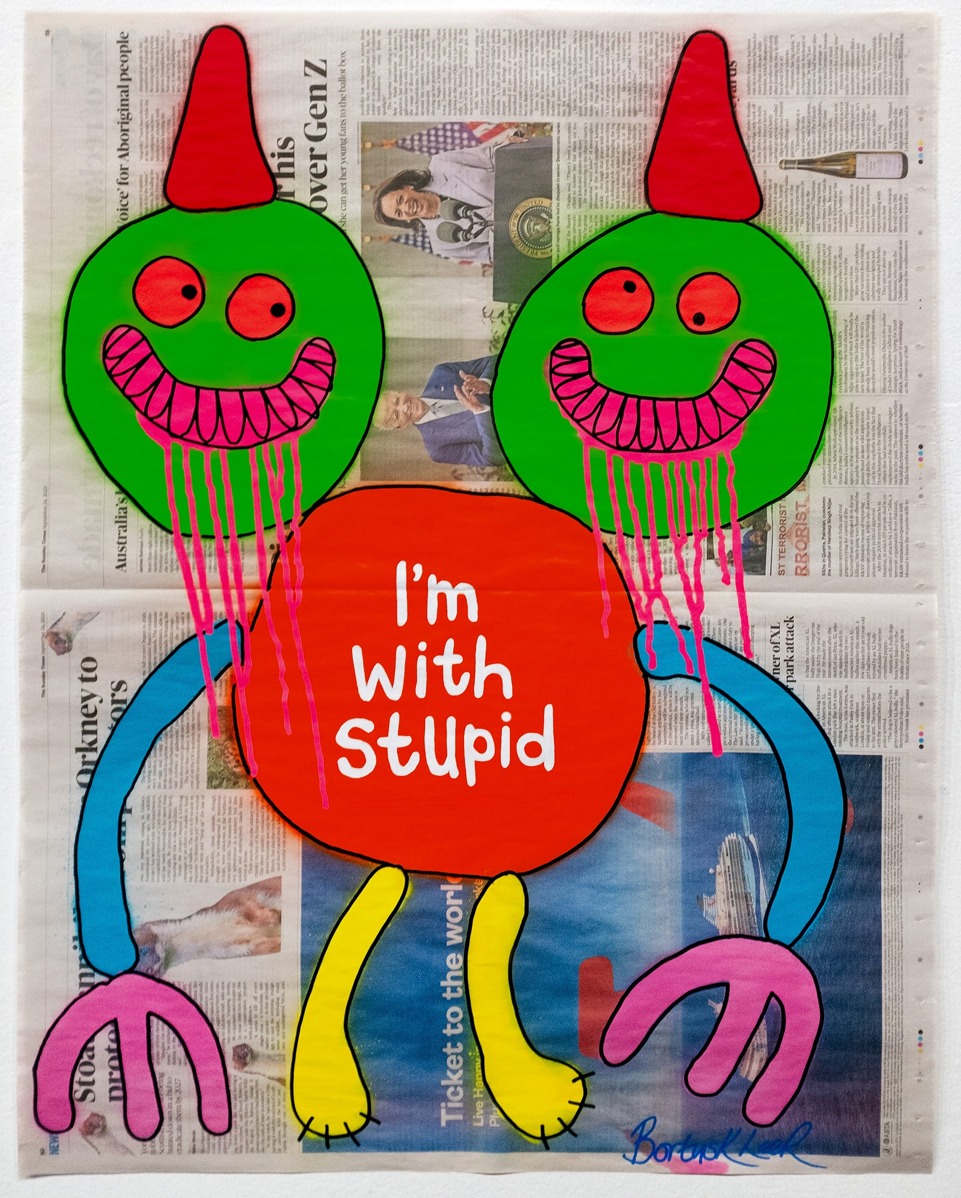 spraypaint, acrylic marker on newspaper, 28.75" x 22.75", 2023