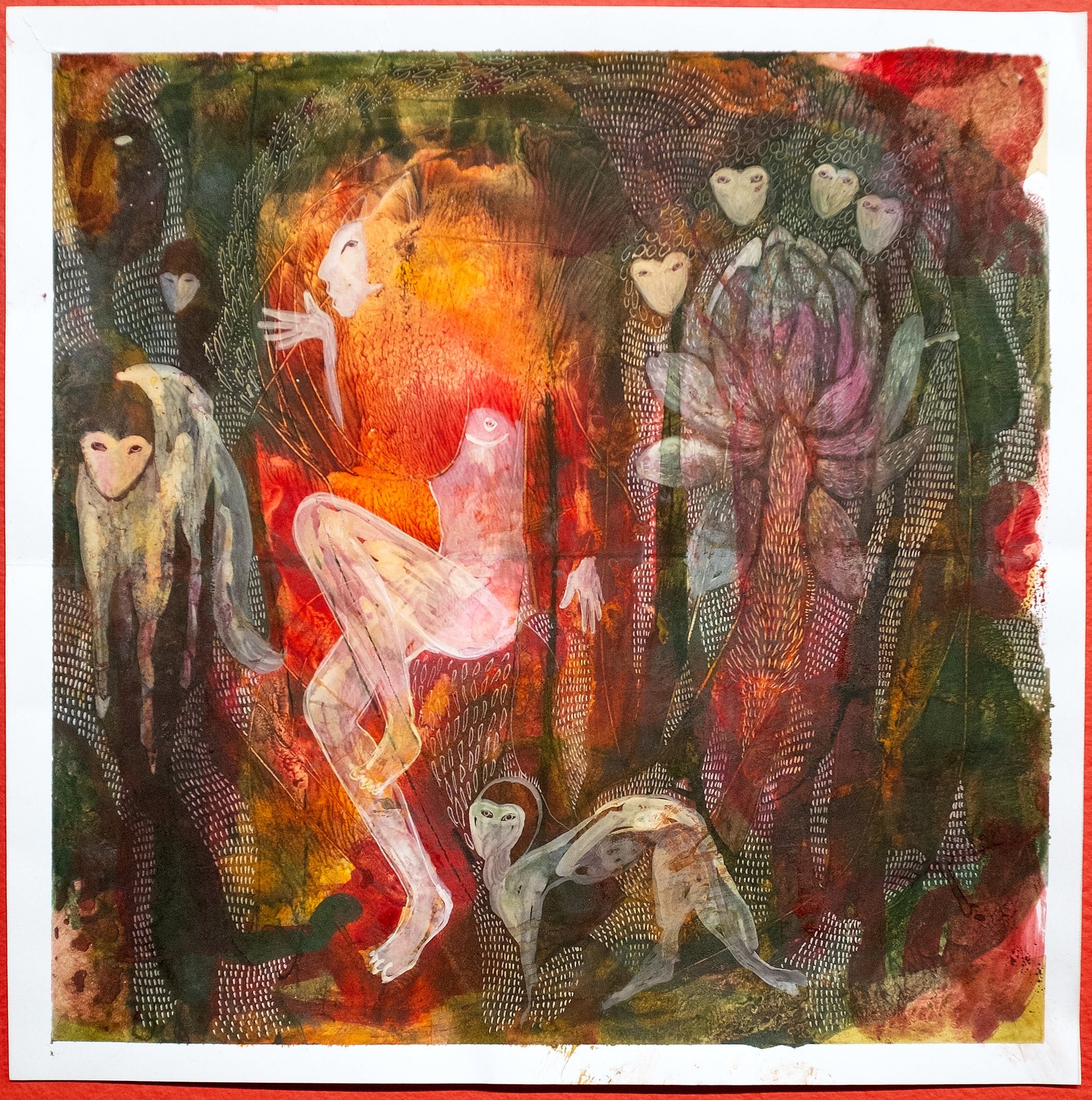 pigments, casein binder, watercolors, inks on art paper, 15.125" x 15.125"