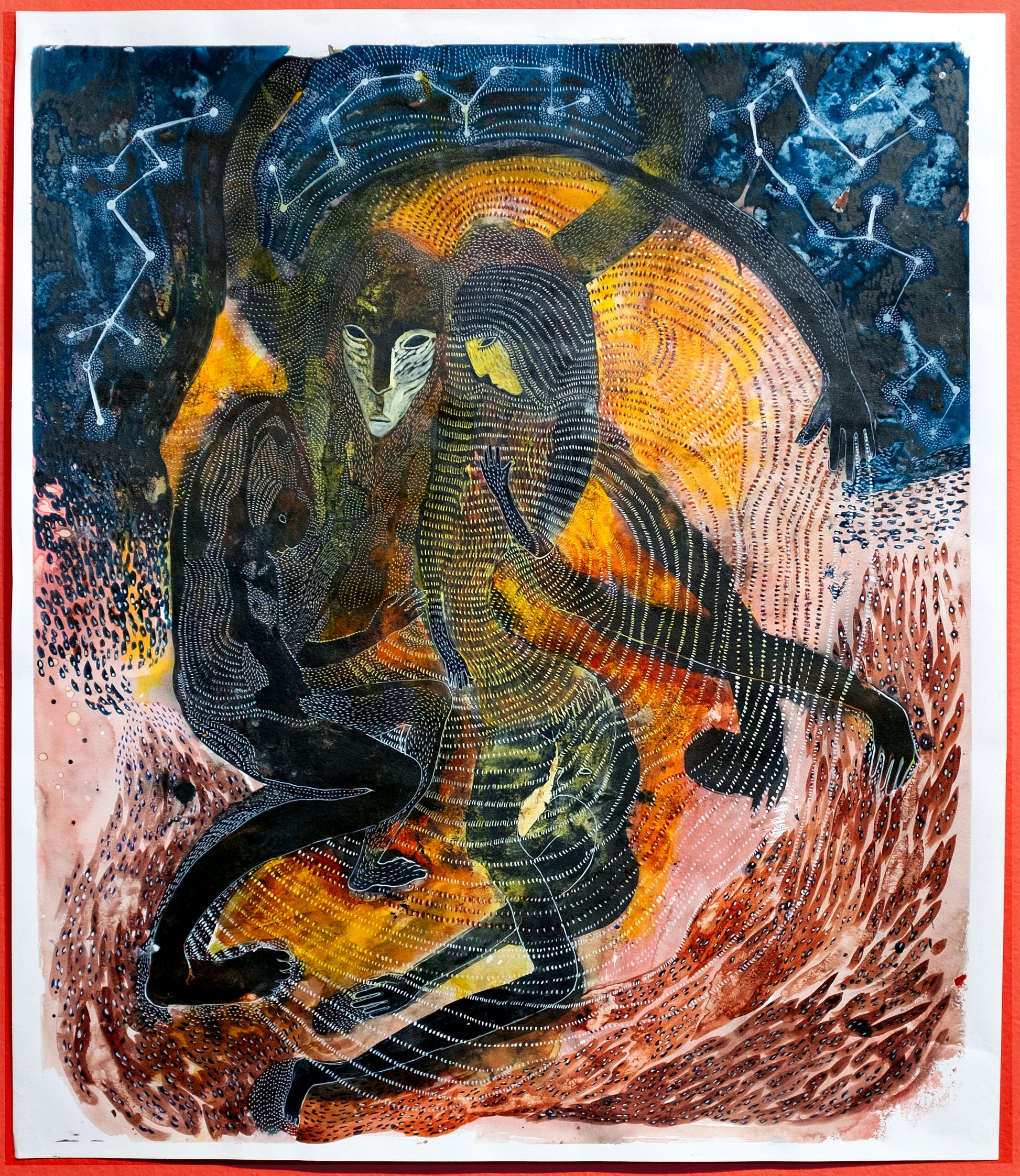 pigments, casein binder, watercolors, inks on art paper, 29" x 25"