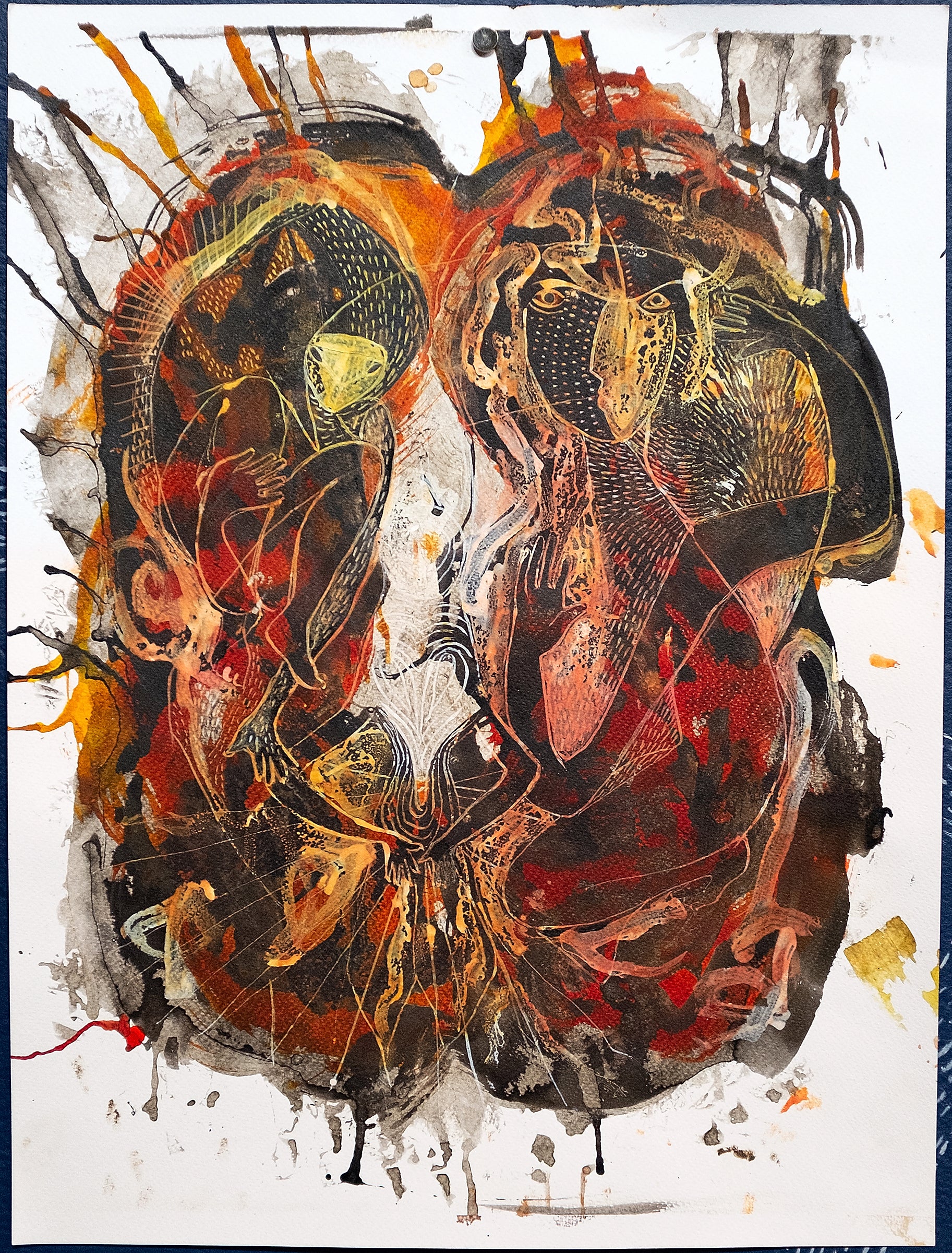 Pigment, acrylic, watercolor on paper, 14" x 18.8”
