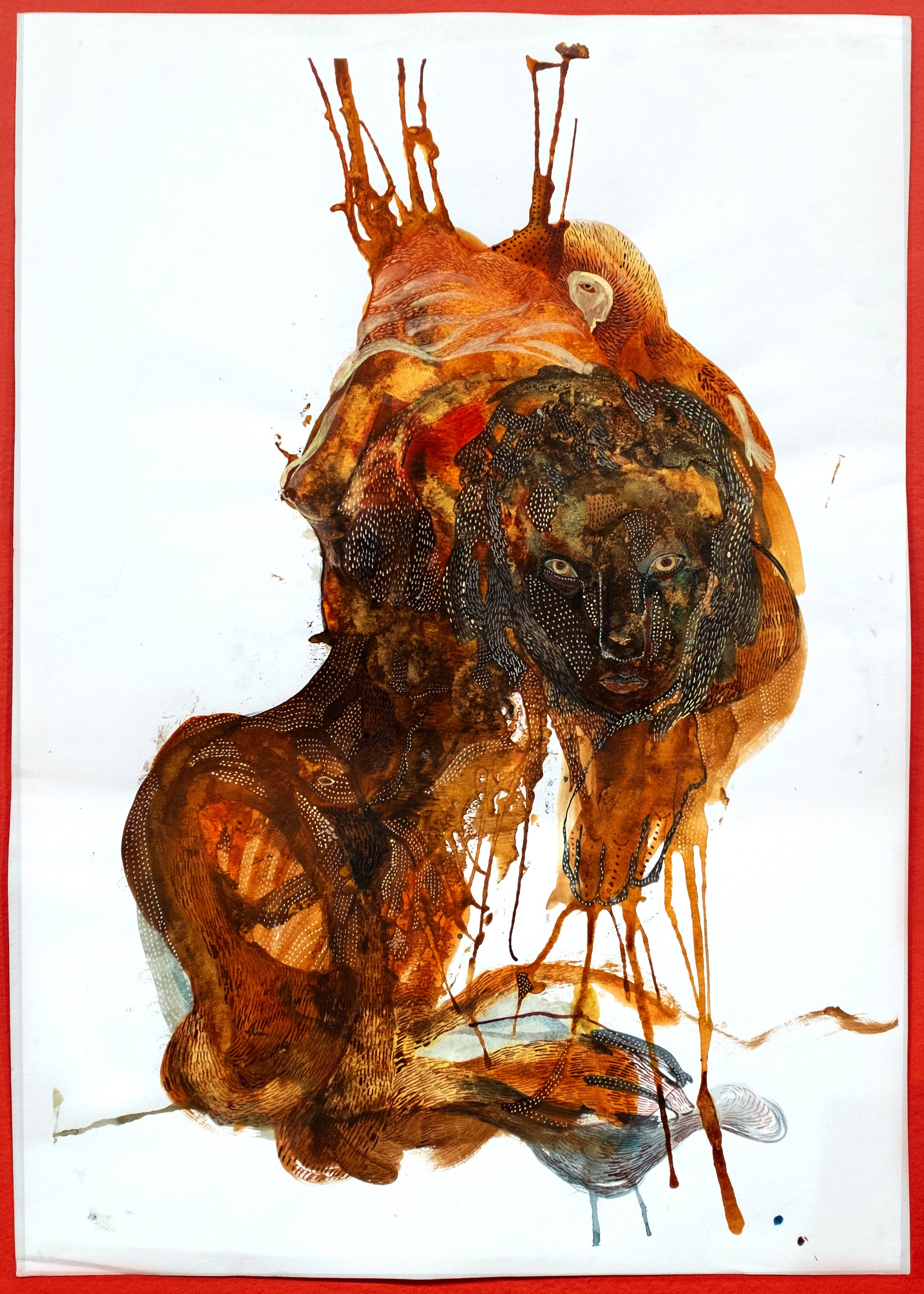 pigments, casein binder, watercolors, inks on art paper, 29" x 20.5"