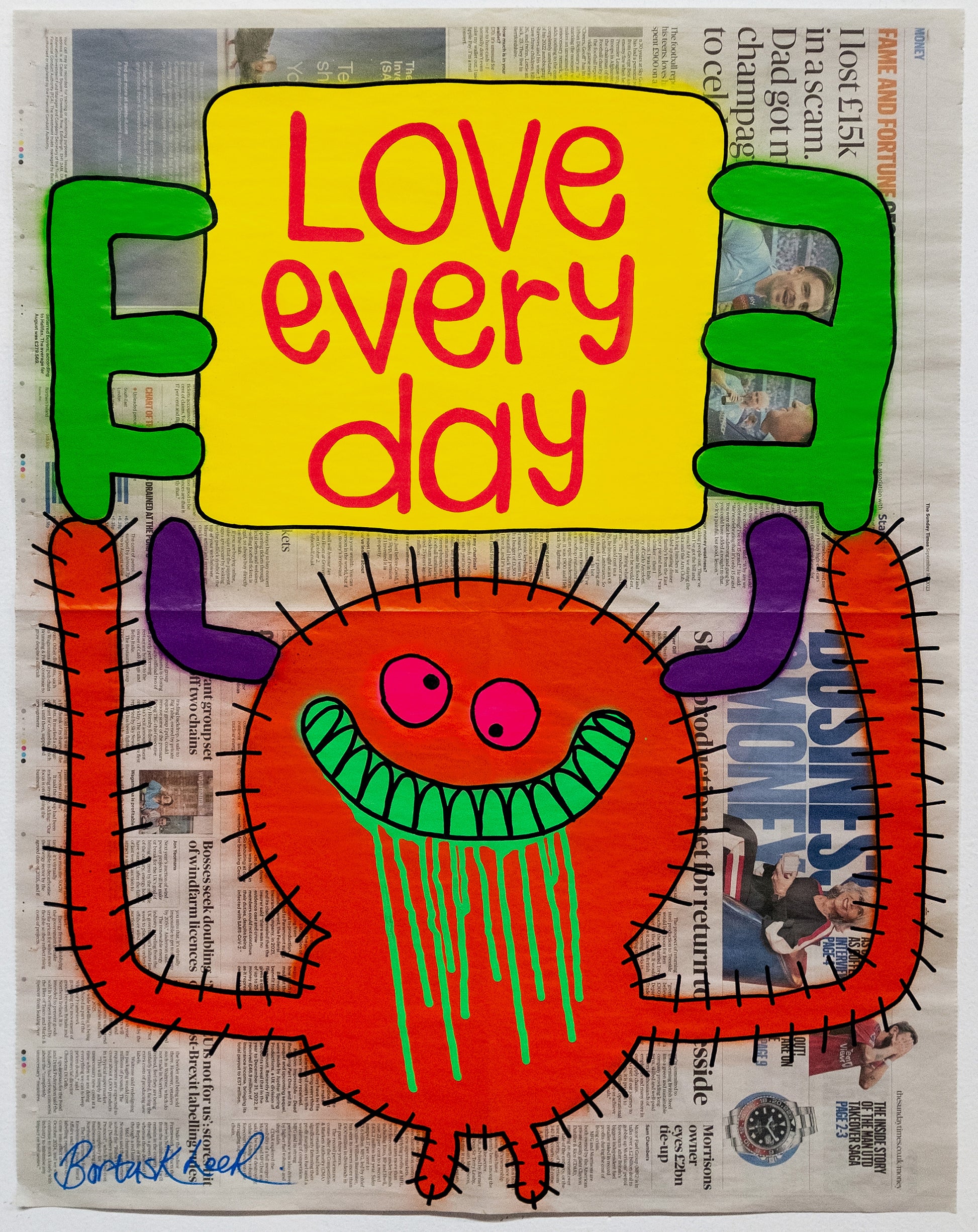 spraypaint, acrylic marker on newspaper, 28.5” x 22.75”, 2023