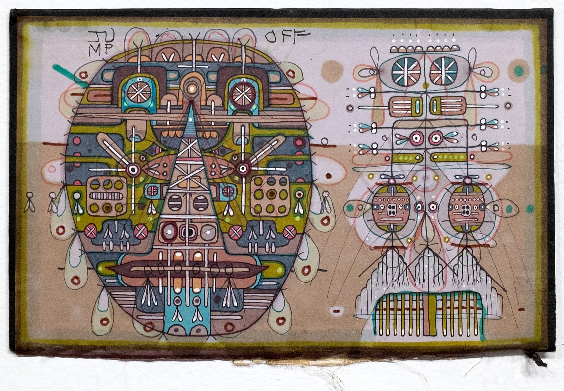 inks the artist mixes from dead pens and markers on vintage bookcover, 6 × 9.5 in