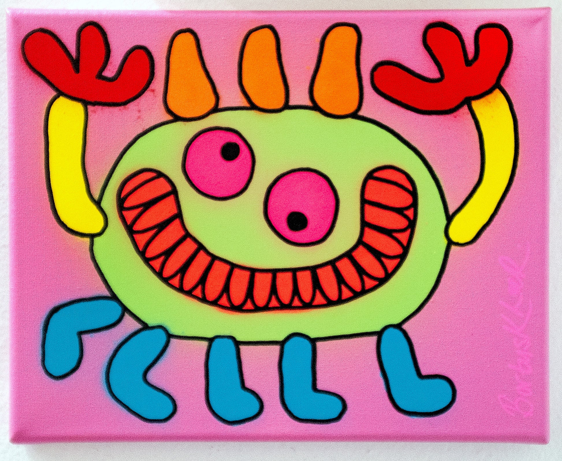 spraypaint, acrylic marker on canvas, 9.25" x 11.5", 2023
