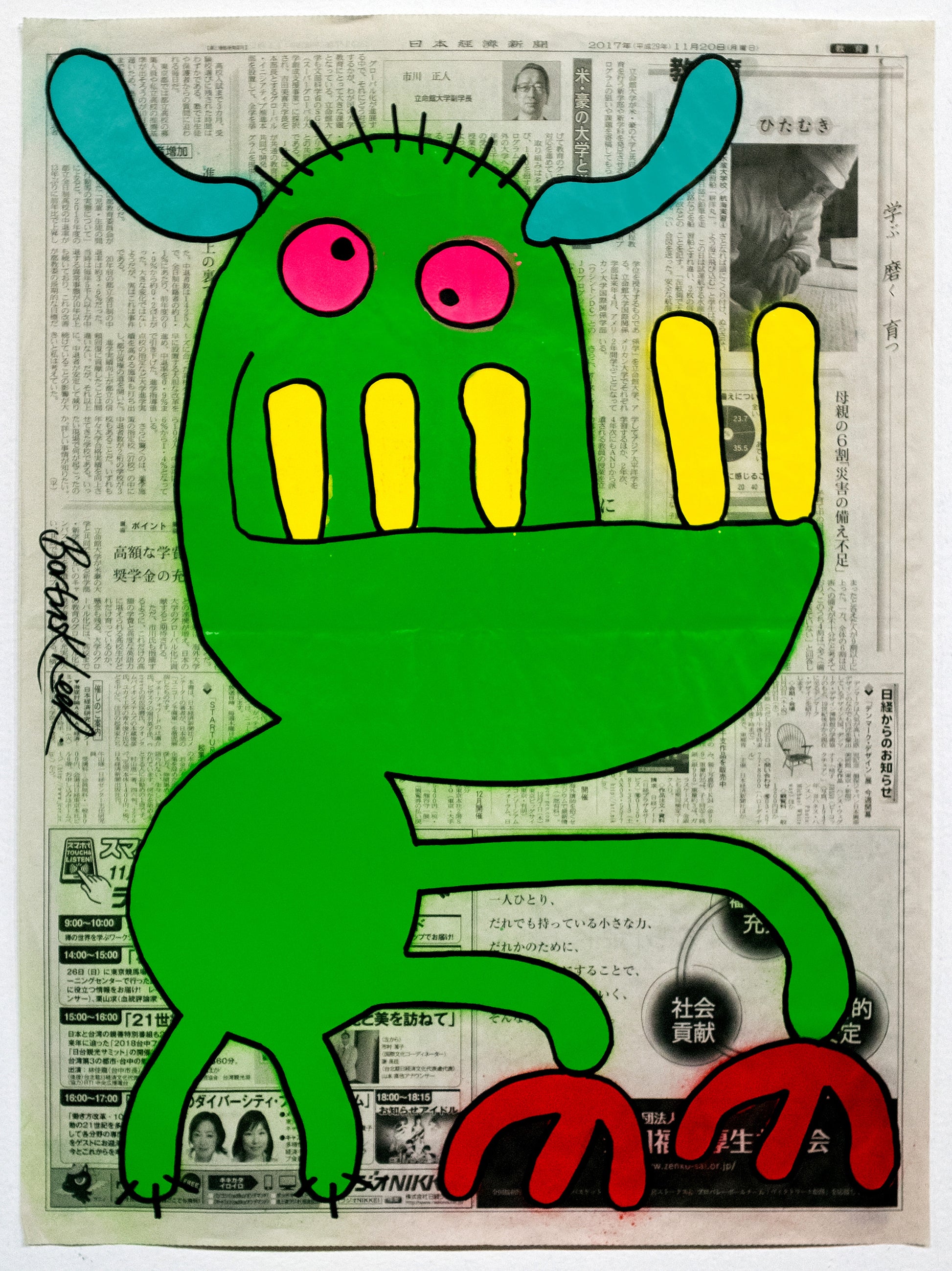 spraypaint, acrylic marker on newspaper, 21.5" x 16", 2022