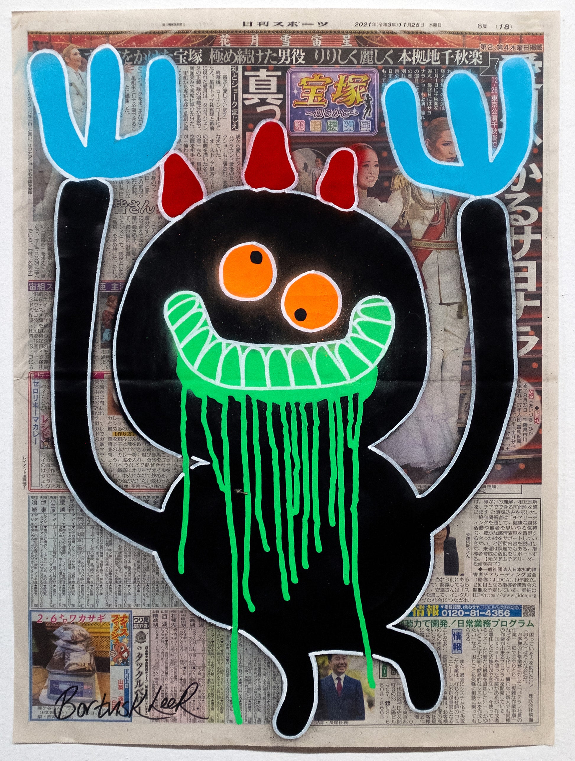 spraypaint, acrylic marker on newspaper, 21.5" x 16", 2022