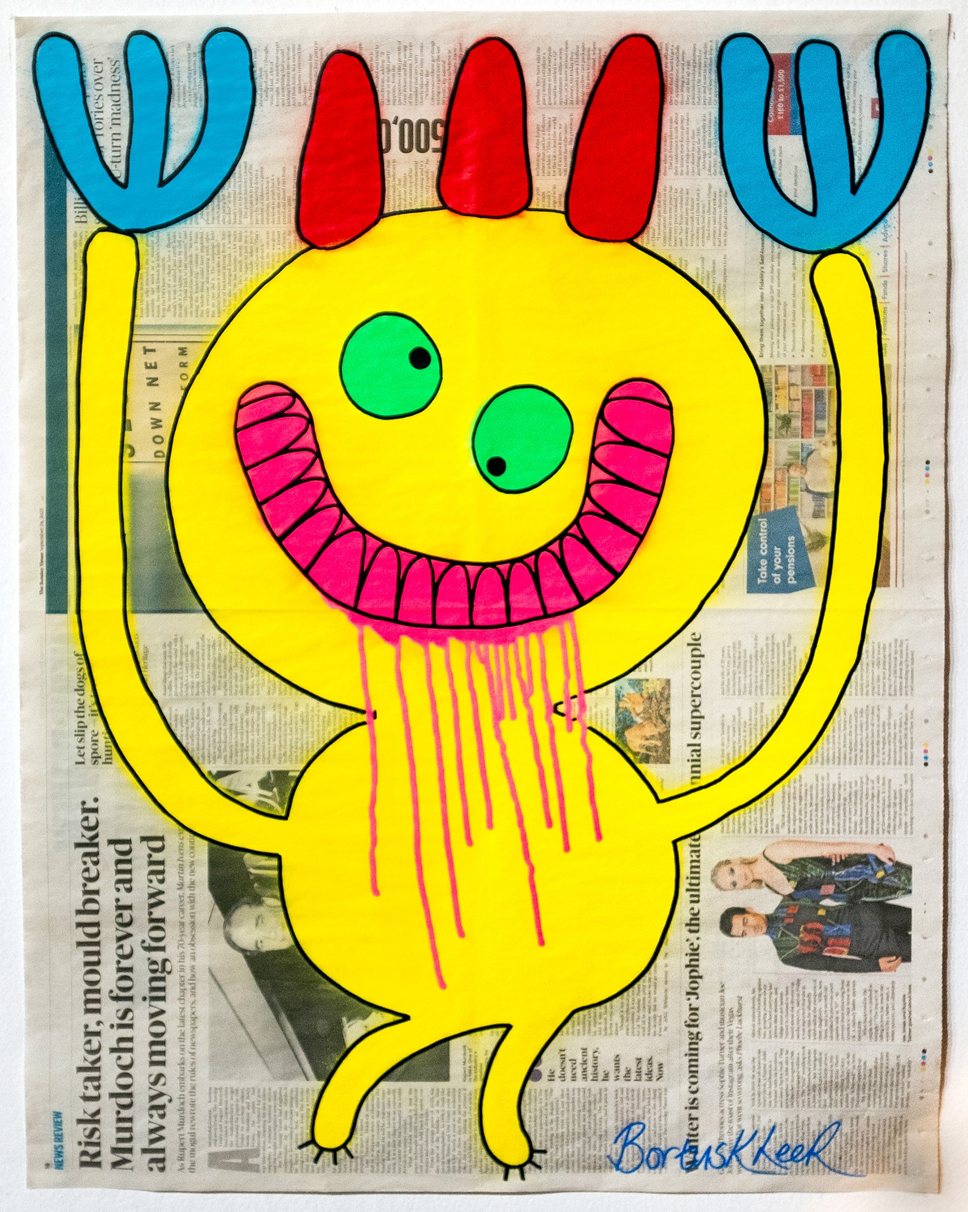 spraypaint, acrylic marker on newspaper, 28.75" x 22.75", 2023