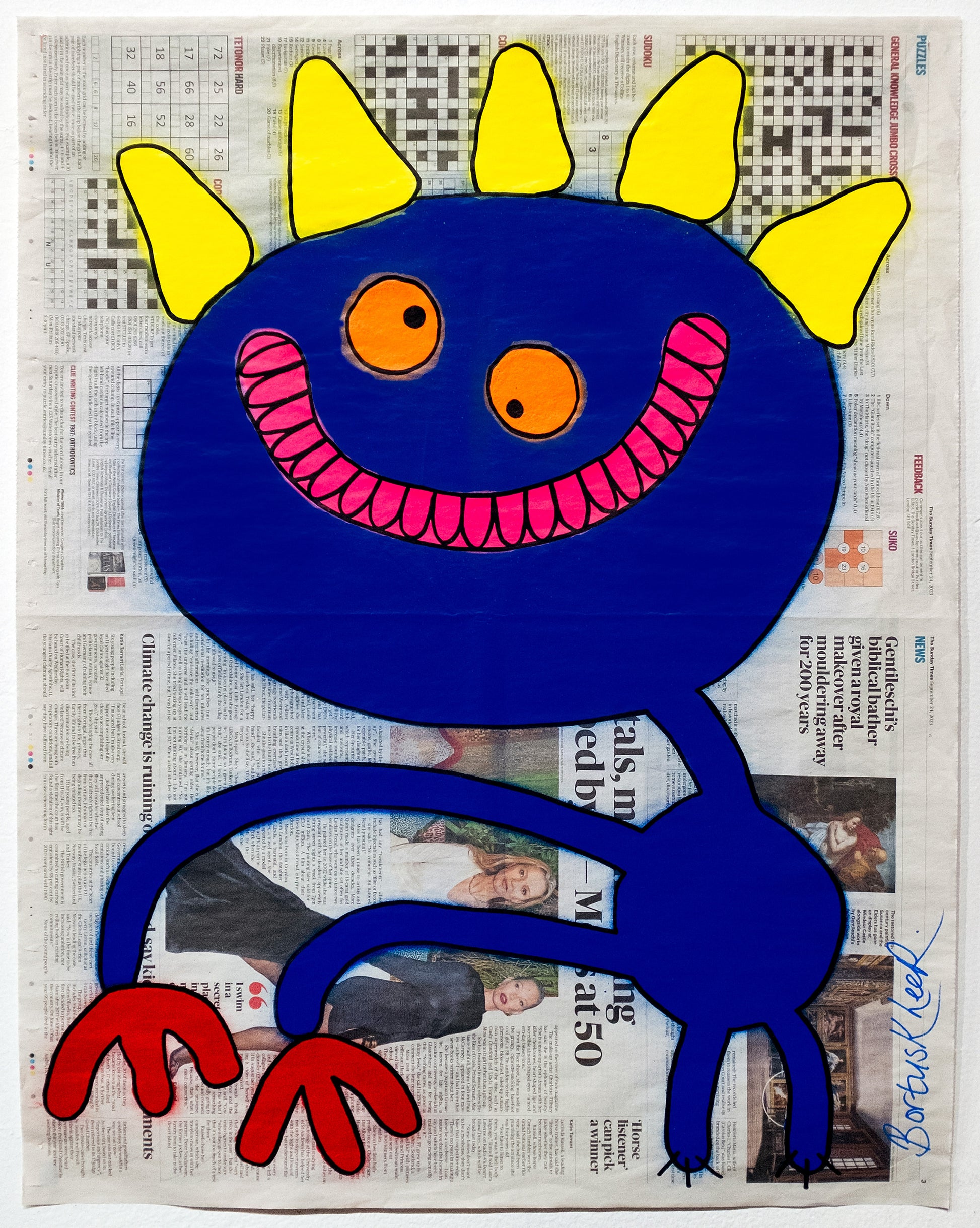 spraypaint, acrylic marker on newspaper, 28.75" x 22.75", 2023