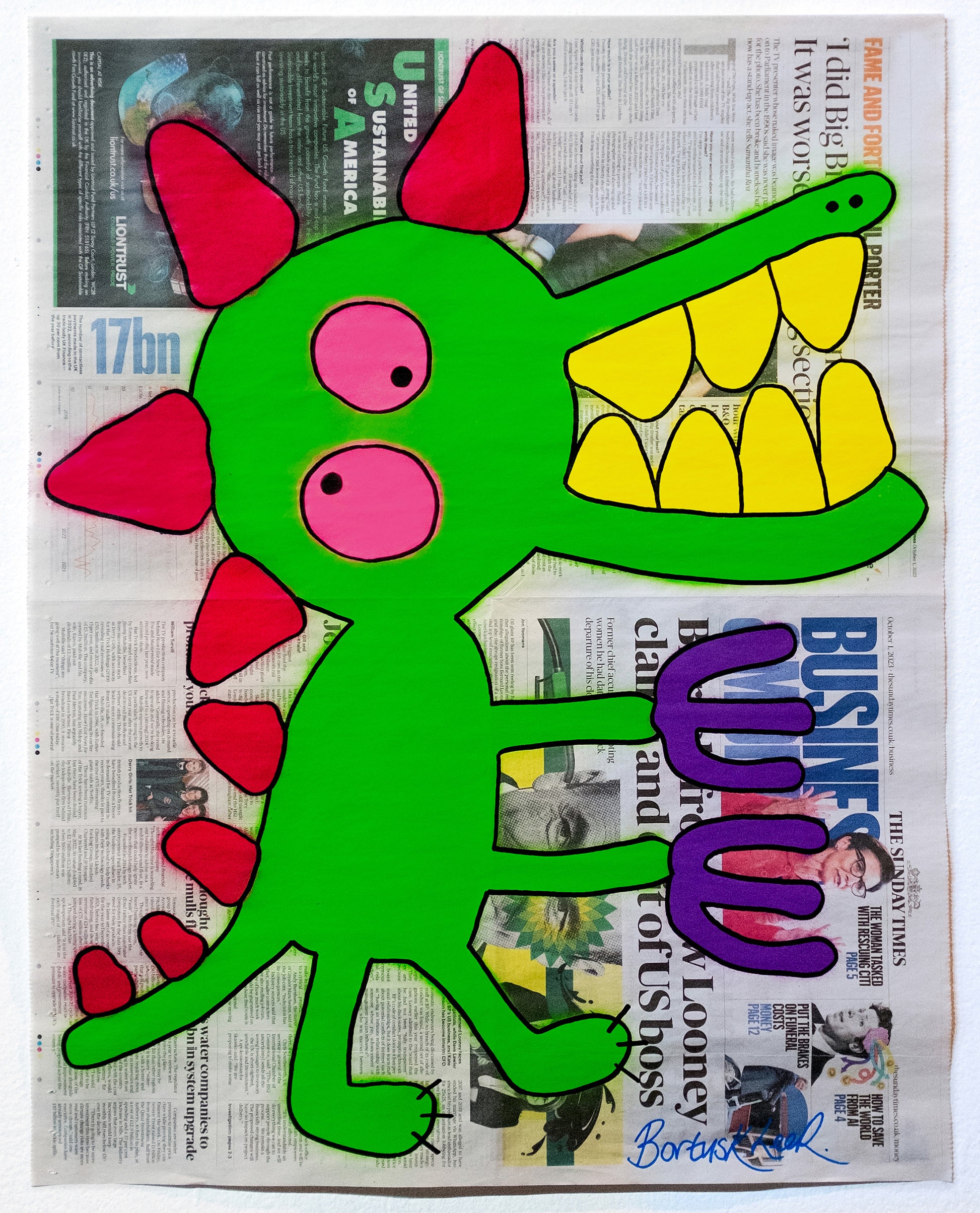 spraypaint, acrylic marker on newspaper, 28.75" x 22.75", 2023