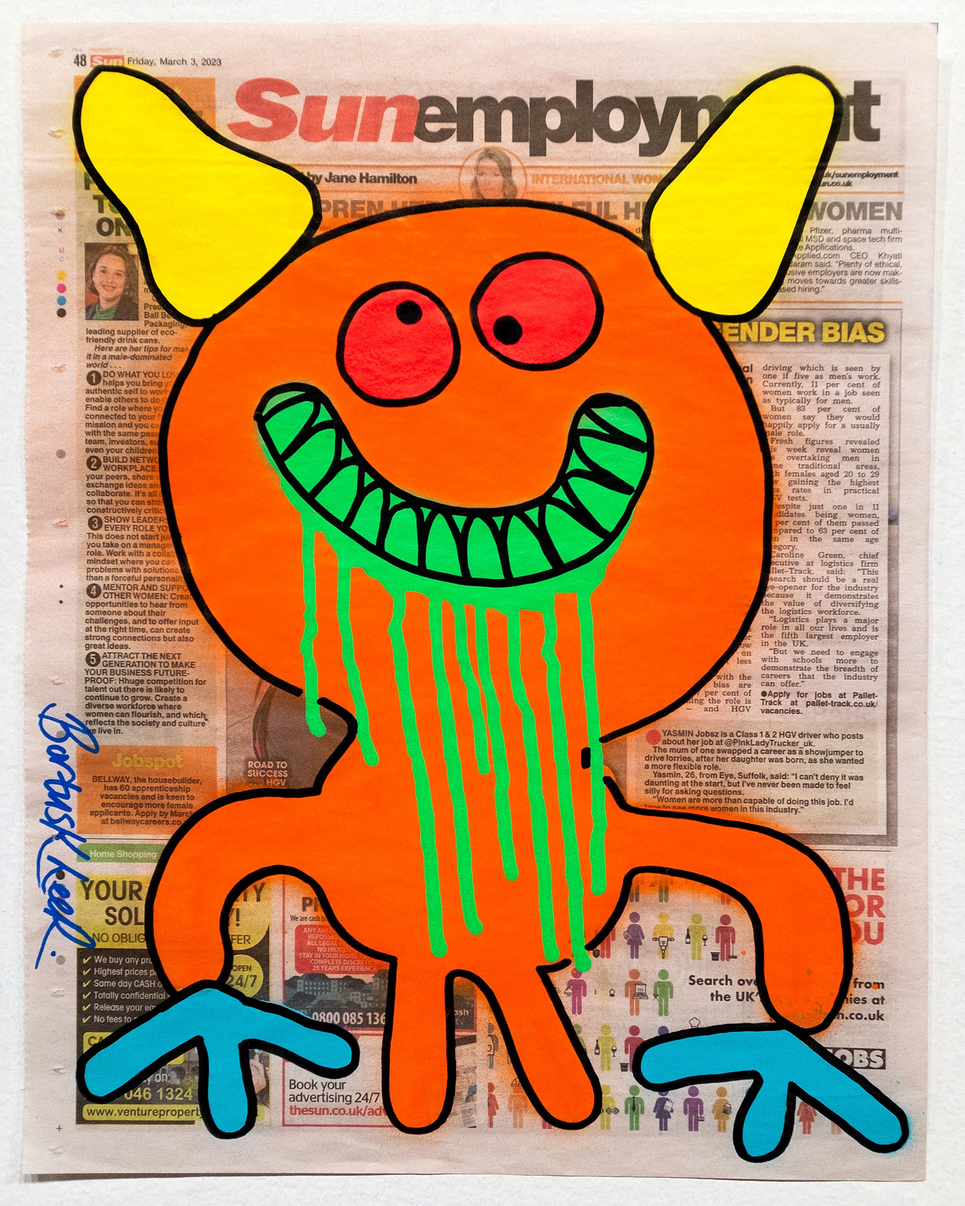 spraypaint, acrylic marker on newspaper, 14" x 11", 2023
