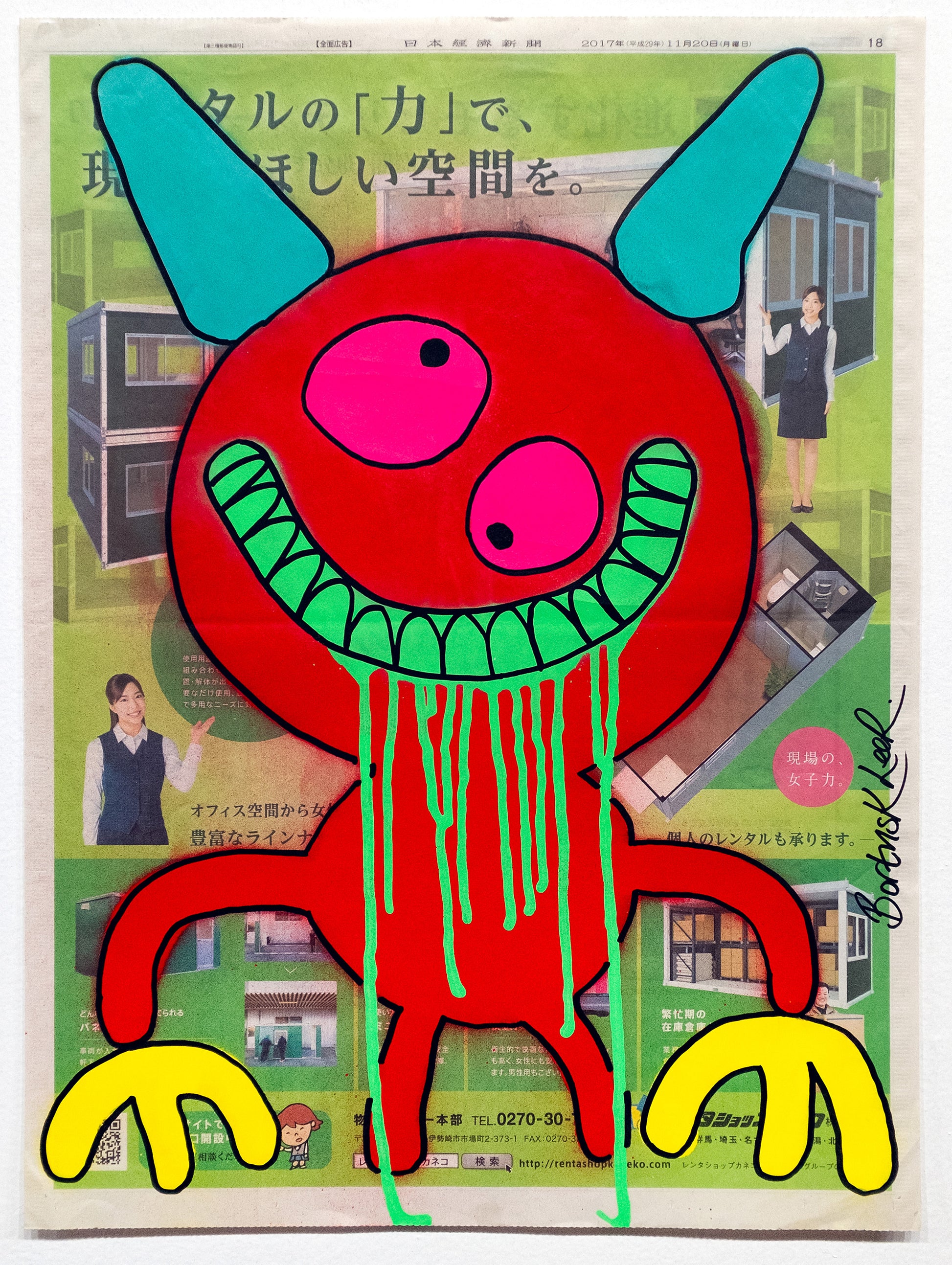 spraypaint, acrylic marker on newspaper, 21.5" x 16", 2023