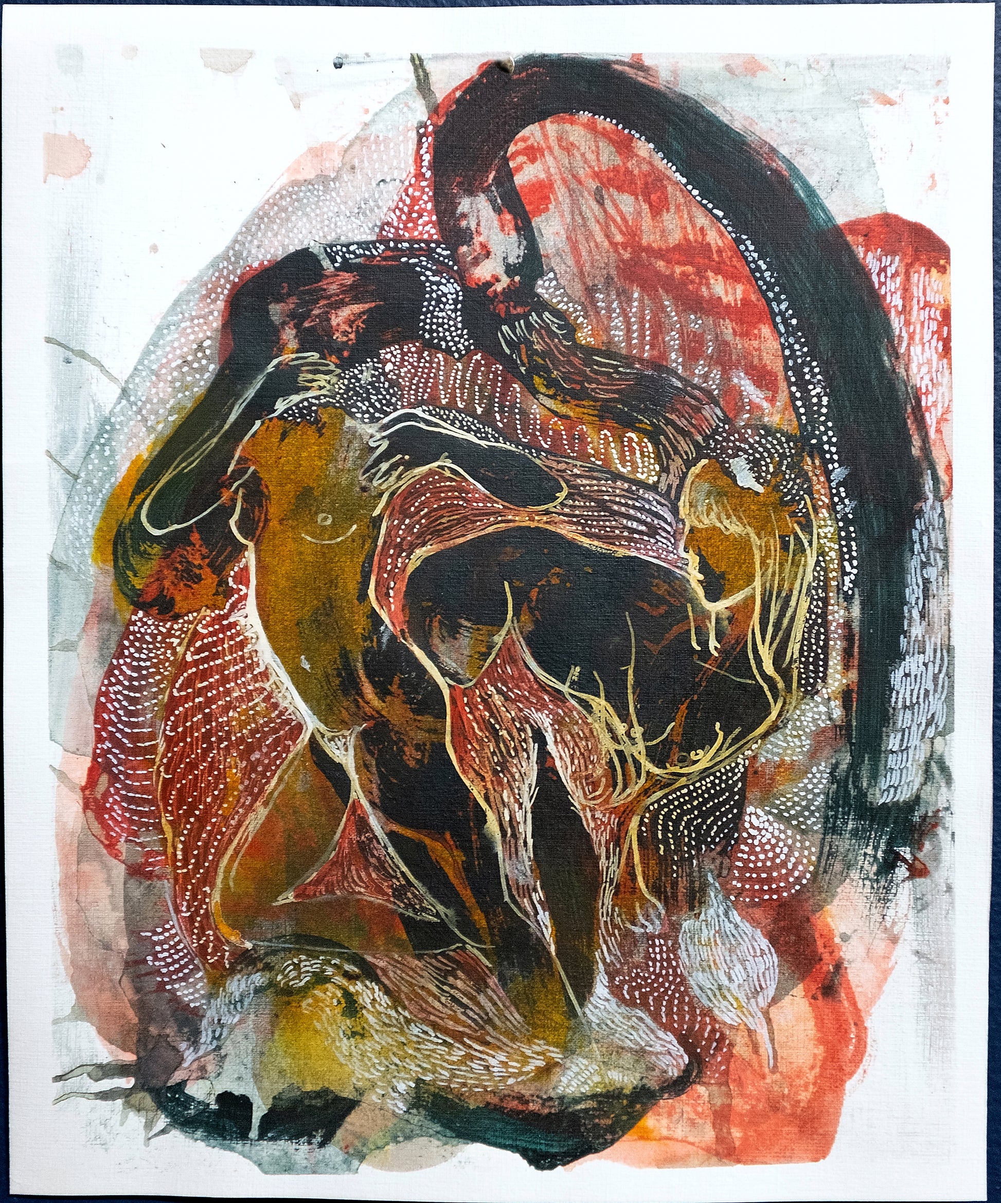 Pigment, acrylic, watercolor on canvas paper, 12.2" x 14.8”