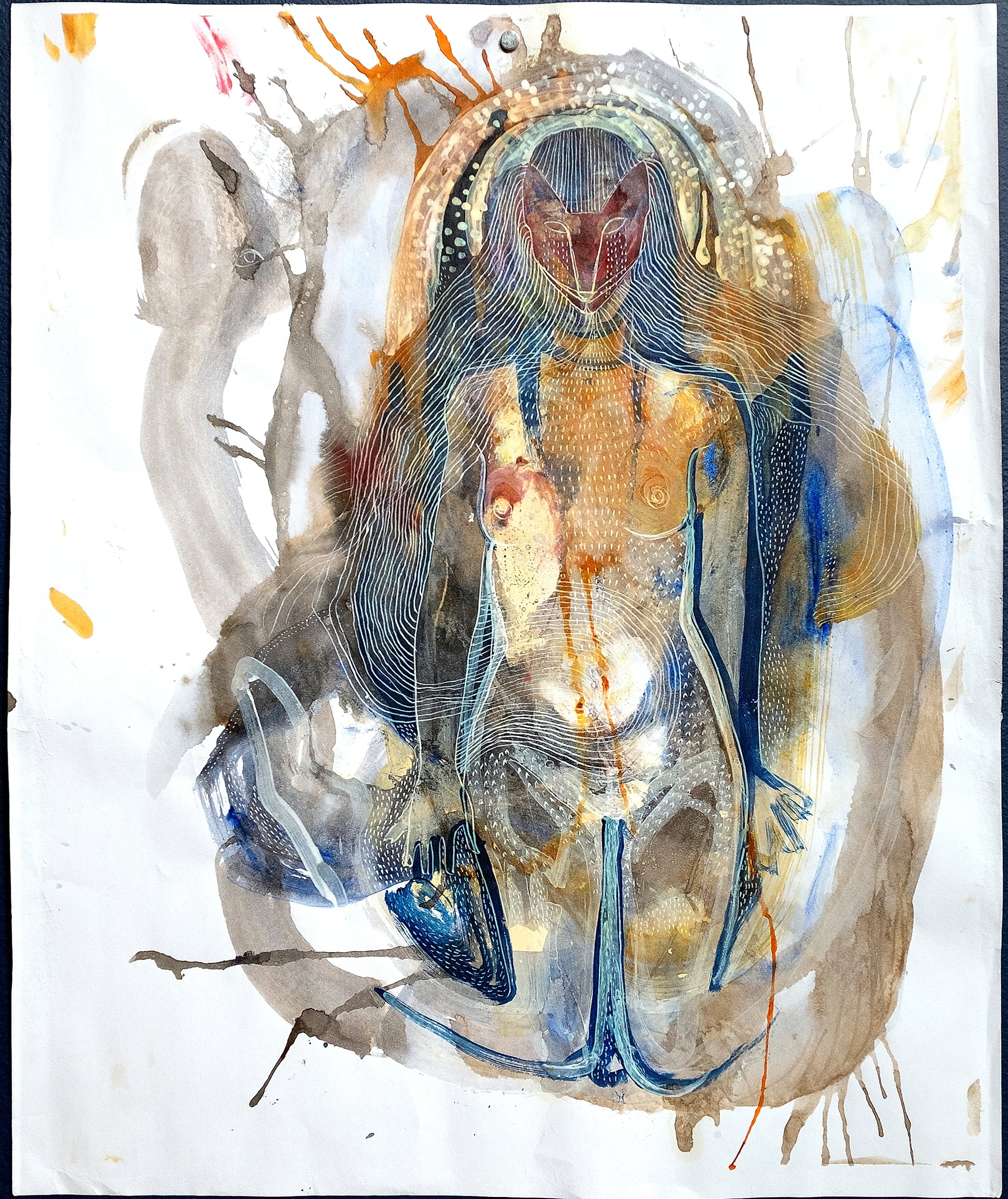 Pigment, acrylic, watercolor on paper, 25" x 20.6”