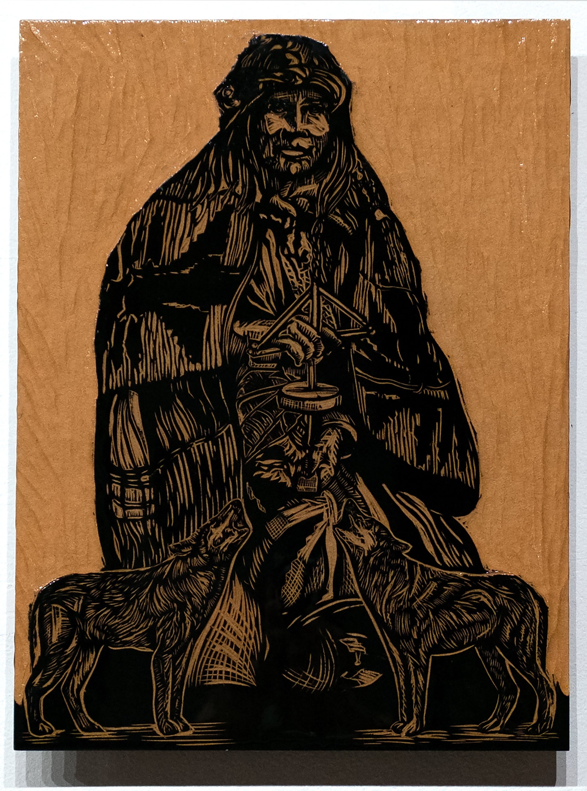 woodblock carving with black ink, resin and epoxy, 24” x 18”