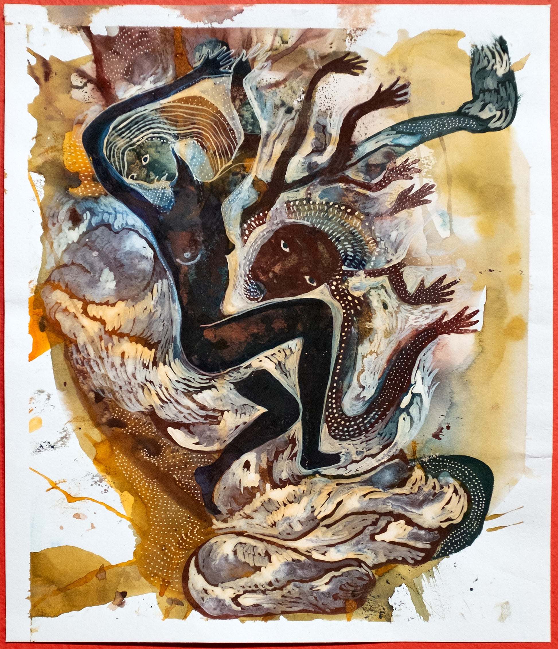 pigments, casein binder, watercolors, inks on art paper, 14.125" x 12"