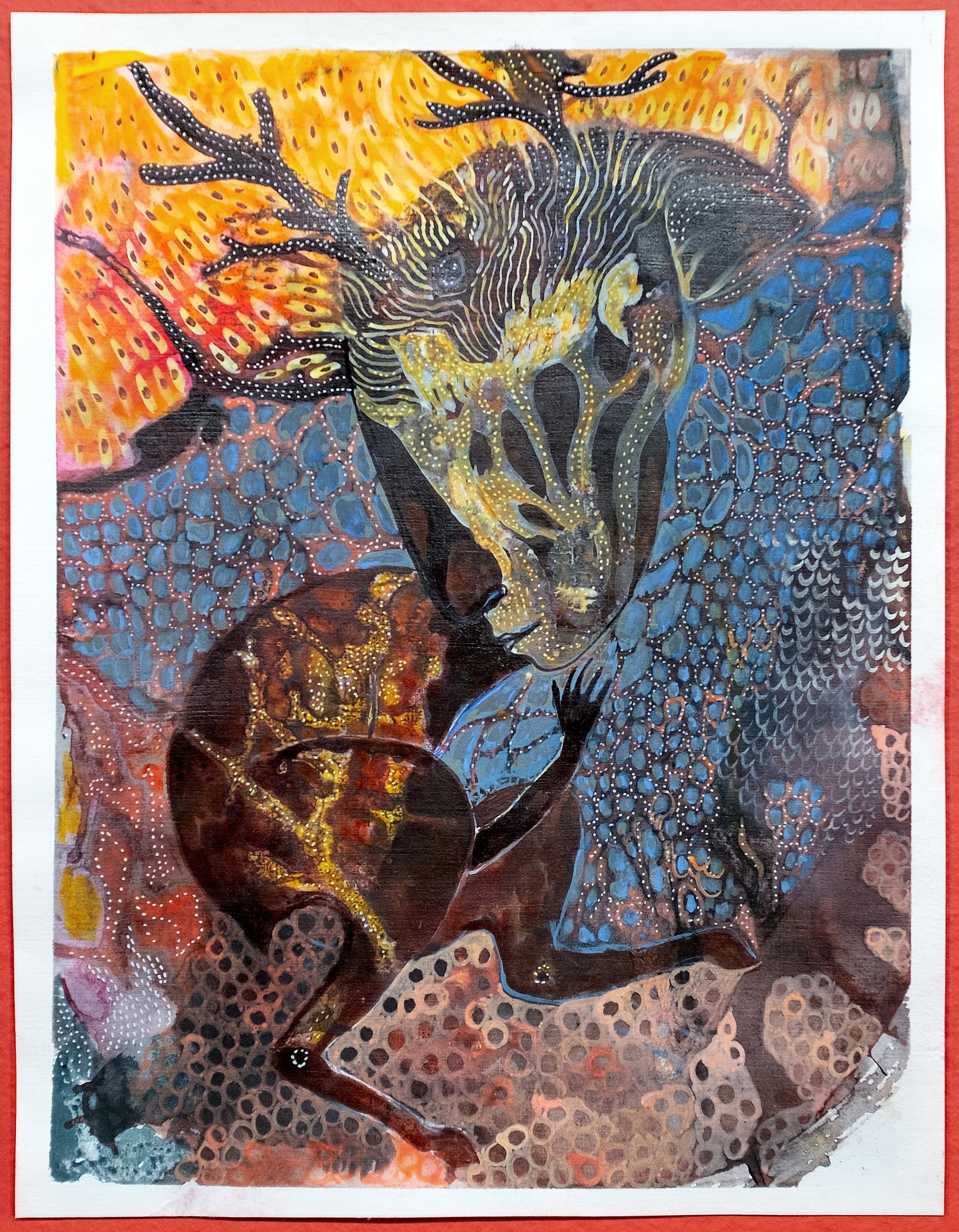 pigments, casein binder, watercolors, inks on art paper, 12.5" x 9.5"
