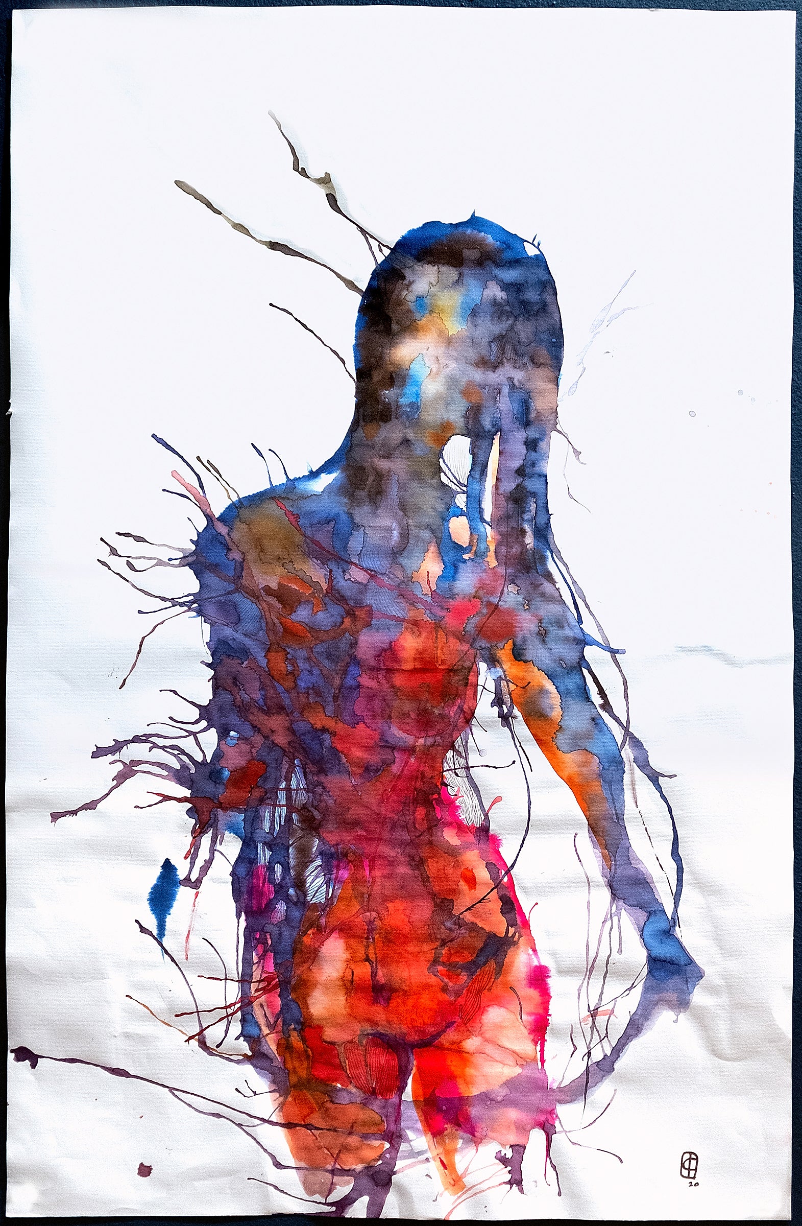 Pigment, acrylic, watercolor on paper, 39" x 25.5"