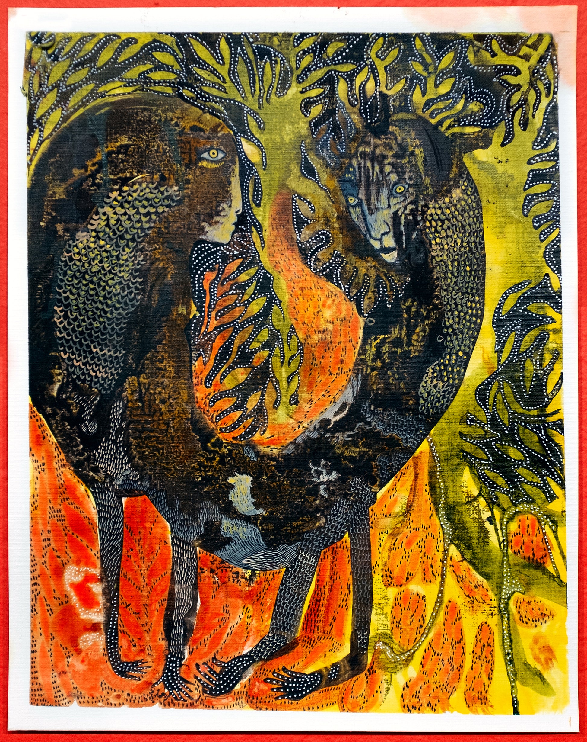 pigments, casein binder, watercolors, inks on art paper, 13.5" x 10.5"