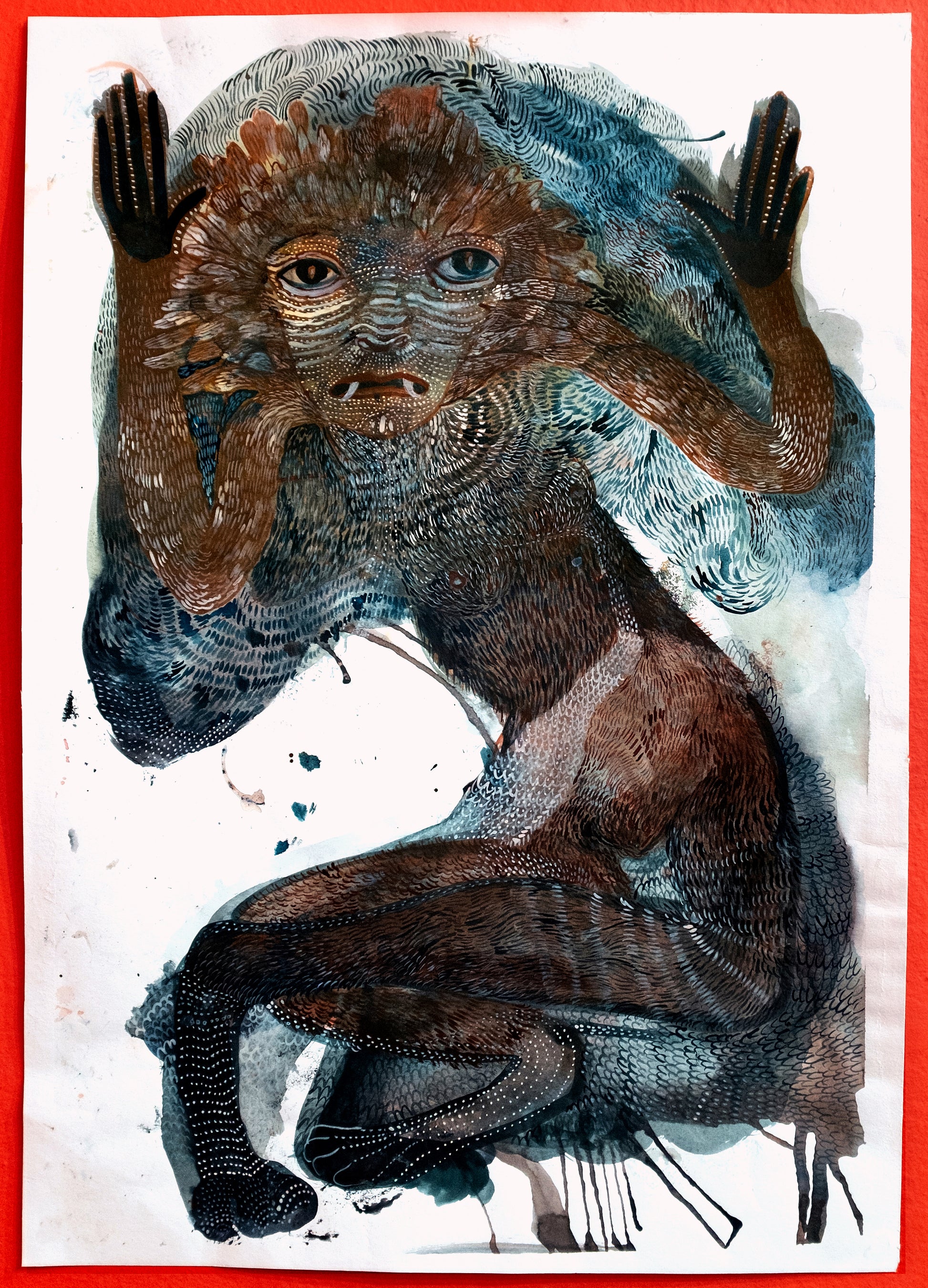 pigments, casein binder, watercolors, inks on art paper, 29" x 20.25"