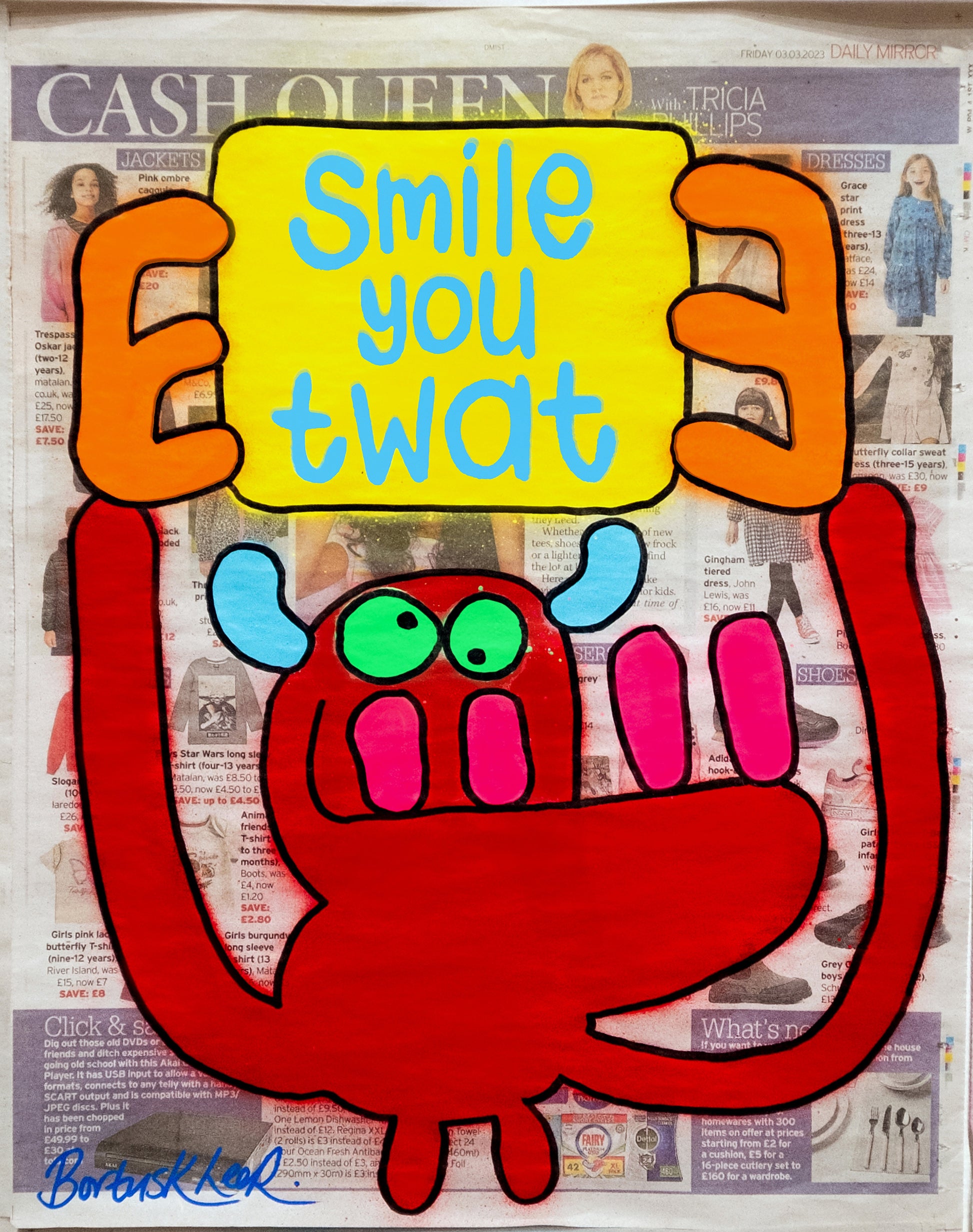 spraypaint, acrylic marker on newspaper, 14” x 11”, 2023