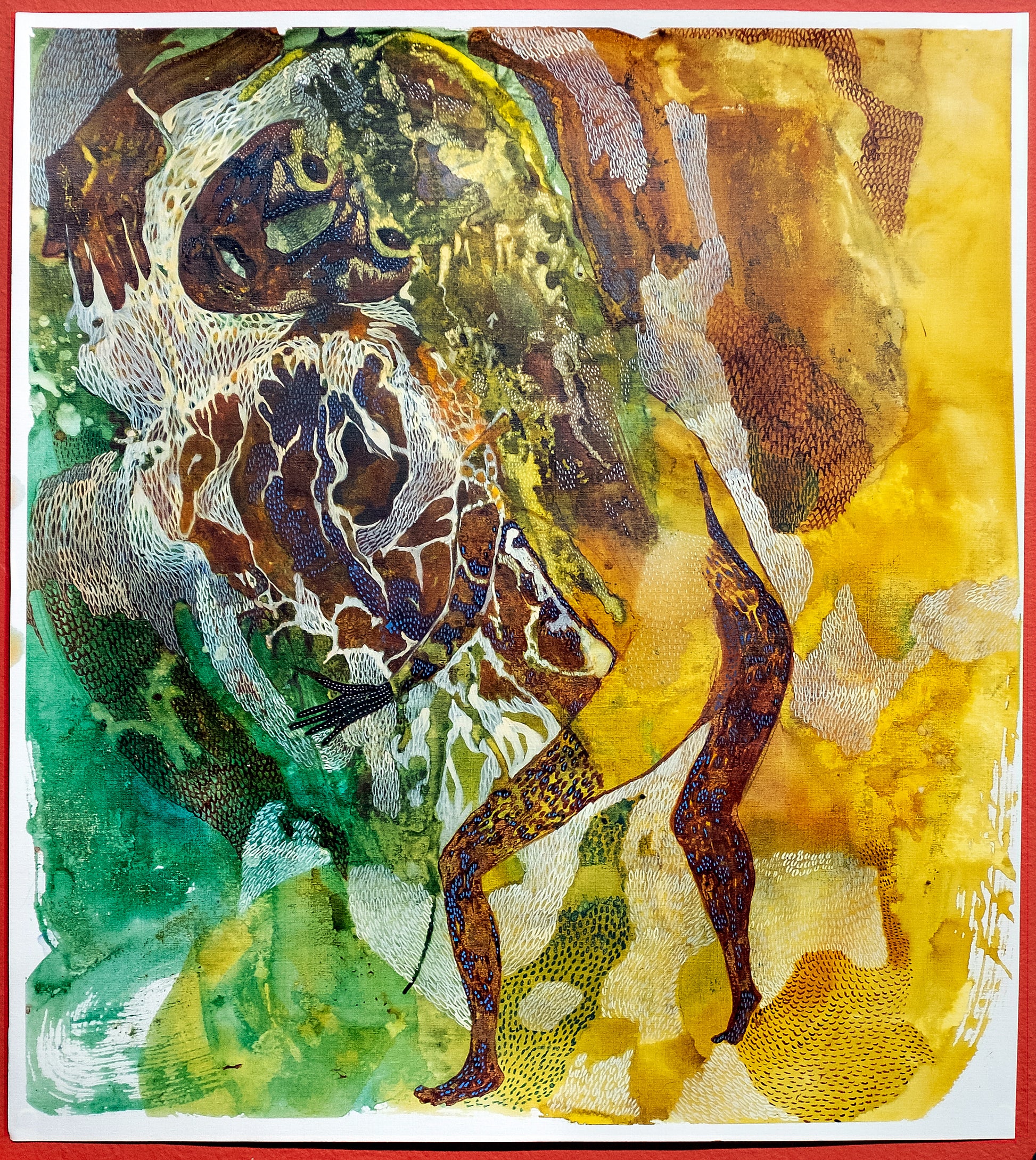 pigments, casein binder, watercolors, inks on art paper, 27.5" x 24.5"